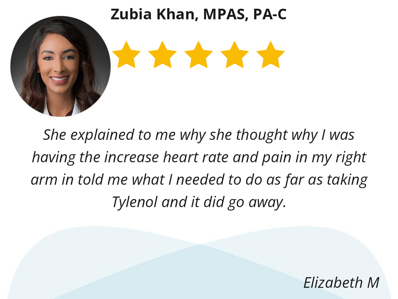 She was by far the best experience I’ve had with a remote/tele health type of appointment. Typically I feel rushed and brushed of on video appointments, but dr Khan took her time to listen to all of my symptoms and offered great treatment plan. I felt heard, and more importantly felt cared about. 11/10