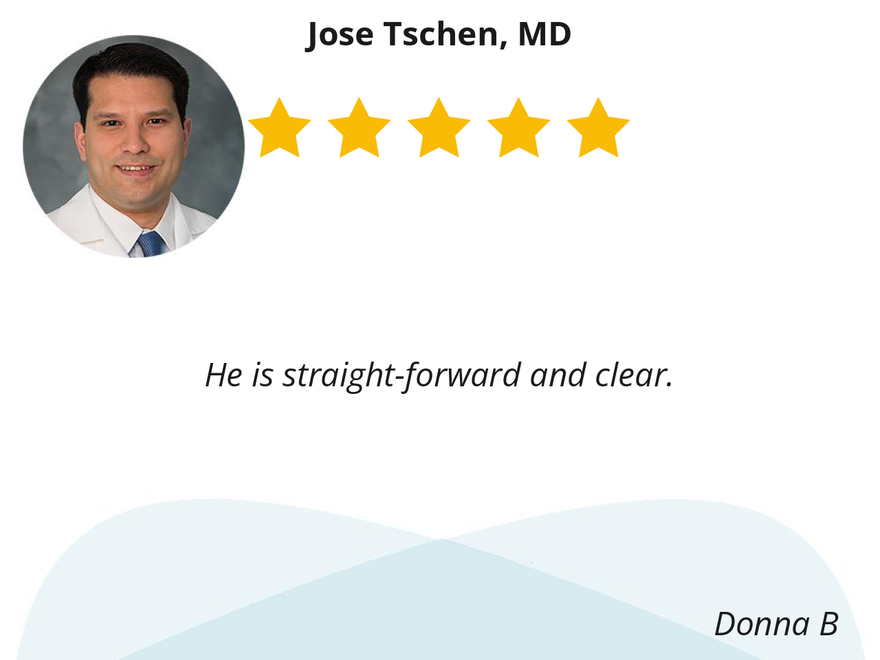I like Dr Jose Tschen because he has great bed side manners. He listen at what I was saying and understood. He is a great Dr and I would recommend him to anyone.