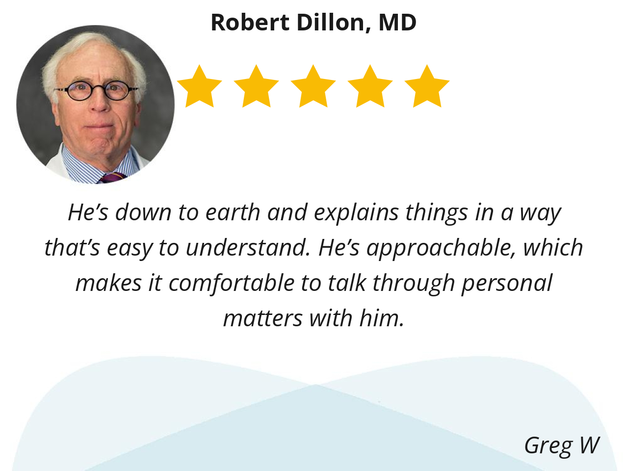 I like Dr. Dillon because he is very friendly. He tells you what is wrong and how to get it right.