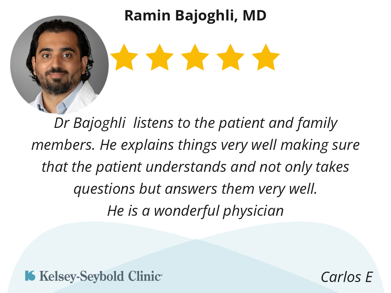 Bajoghli clearly had reviewed my file before coming in. He took his time and spoke with me, listening and engaging appropriately.