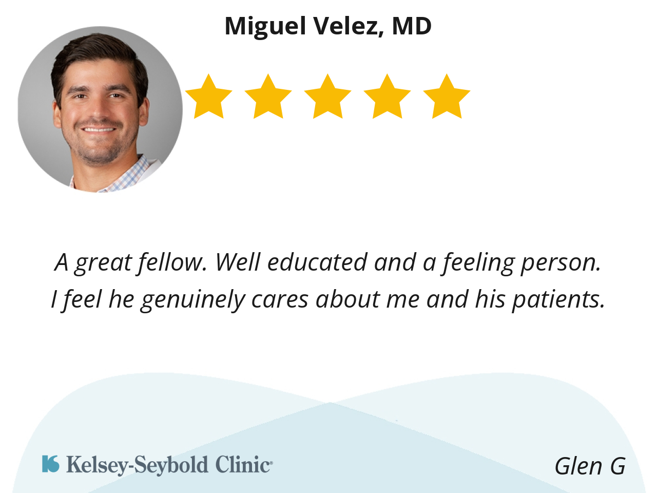 I like Dr Miguel Velez because he is very knowledgeable, sensitive, and informative. He’s very understanding and listens to your concerns, taking the time to explain the diagnosis and treatment options clearly.
