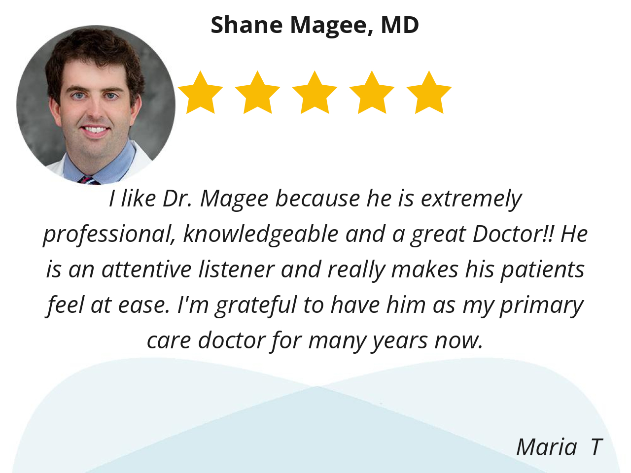 I like Dr. Magee because he is extremely professional, knowledgeable and a great Doctor!! He is an attentive listener and really makes his patients feel at ease. I'm grateful to have him as my primary care doctor for many years now.