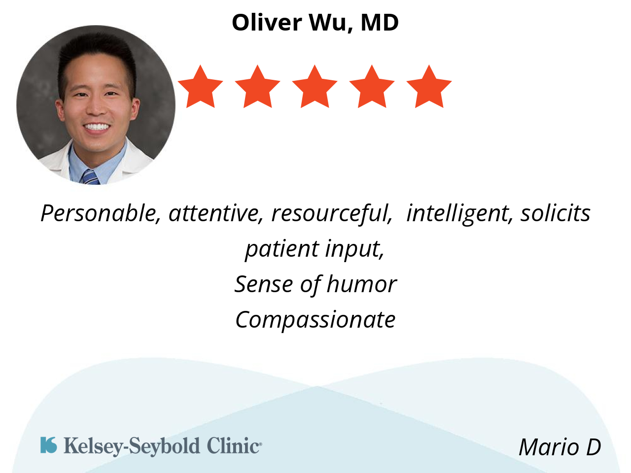 Dr. Wu listens carefully and asks perceptive follow up questions. I feel like he is looking after my health interests and providing good advice.