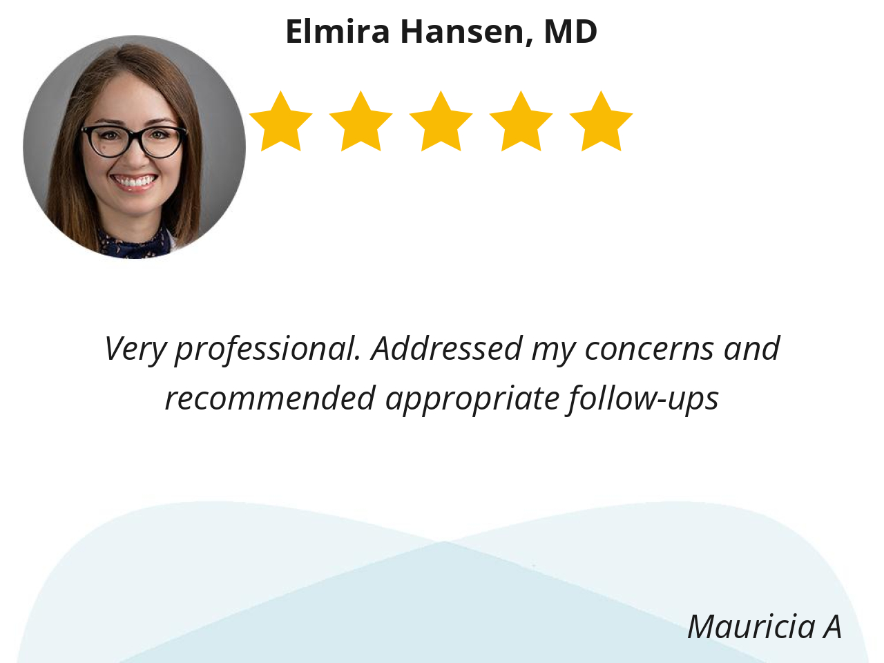 Dr. Hansen is exceptional. She truly listens, explains things clearly, and makes you feel like a partner in your care. She solved a complex issue others missed. Brilliant, thorough, and compassionate. I cannot recommend her highly enough.