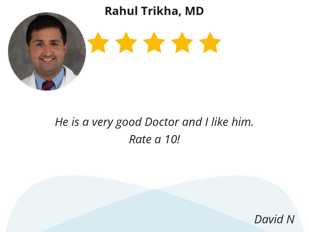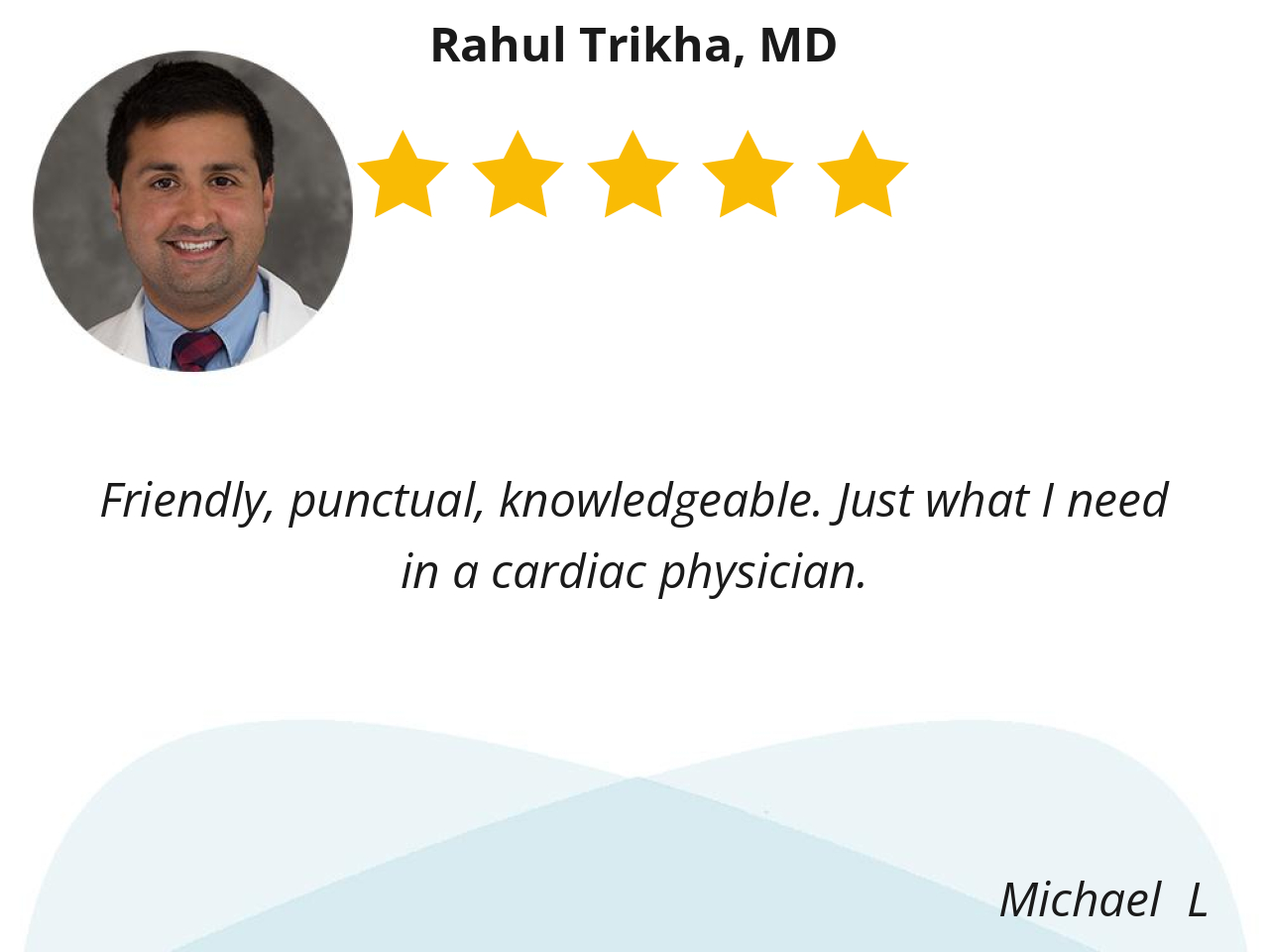 While Dr. Trikha is superb in all respects (focused, professional, patient, intuitive, and knowledgeable), the cardiology nursing and support staff -- I'm looking at you, Julie -- is the frosting on the cake.
