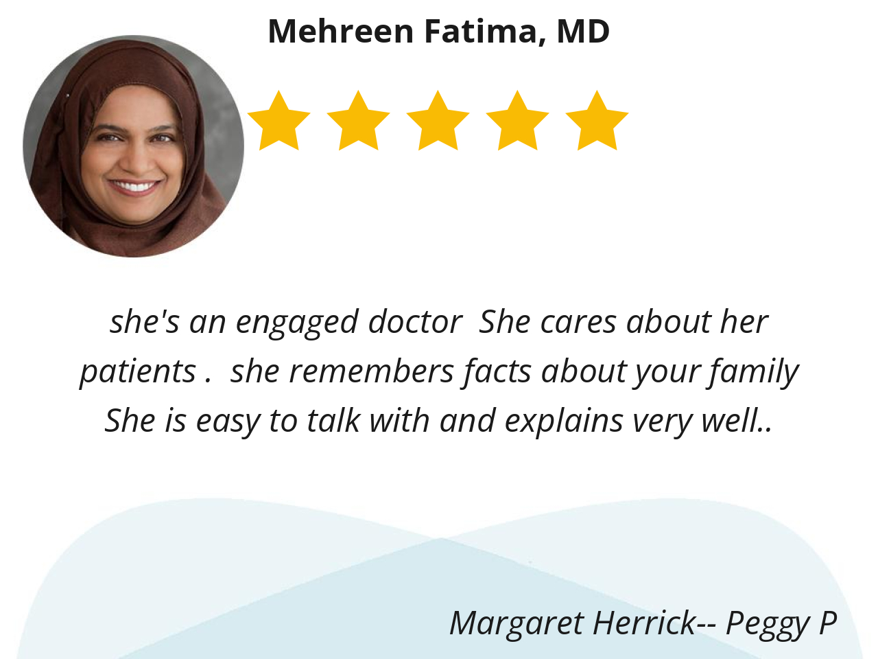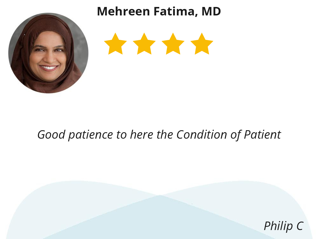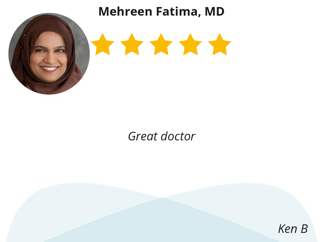 Dr. Fatima is so thorough. She truly seems to care about my wellbeing.