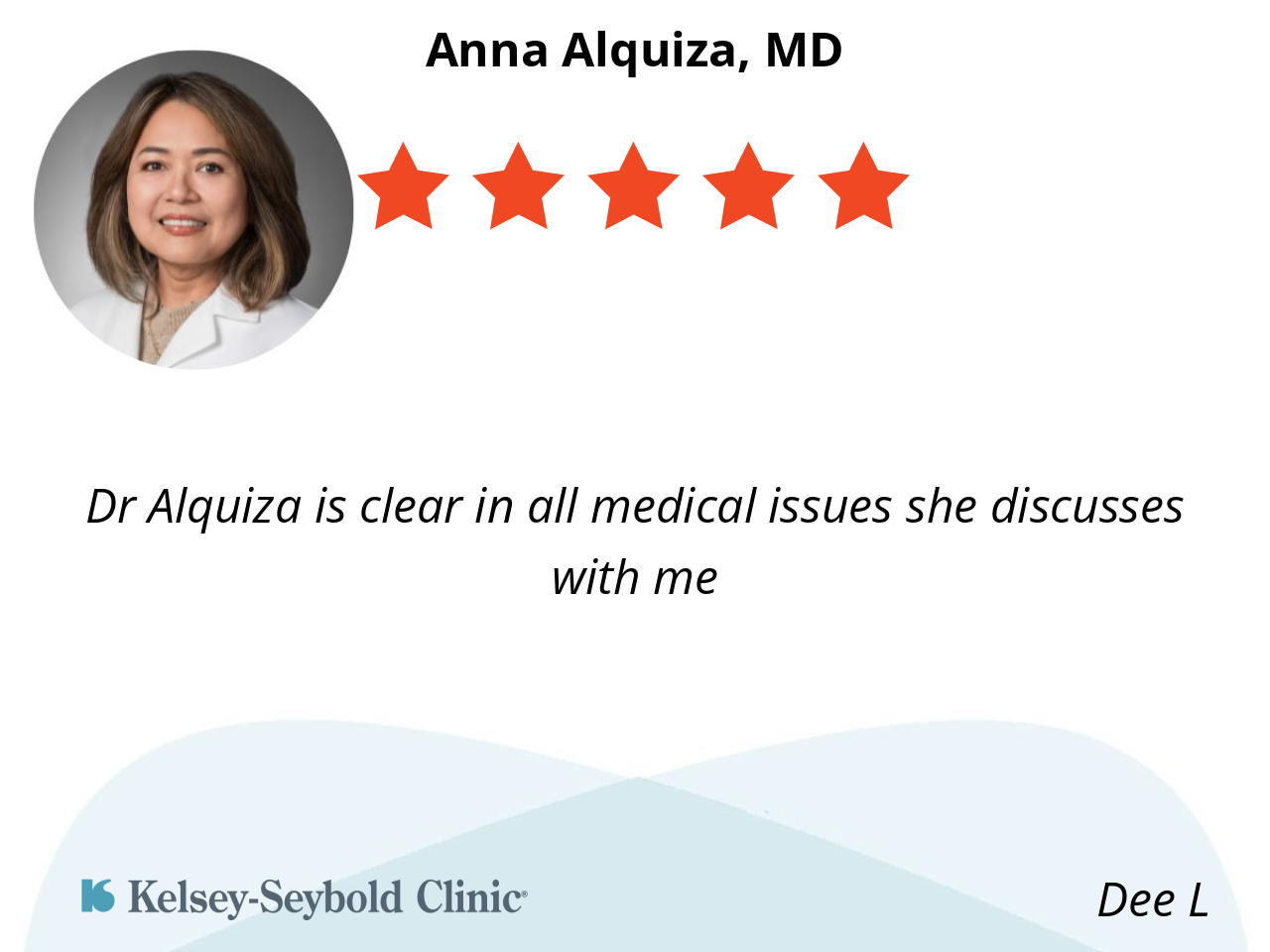 Dr Alquiza is clear in all medical issues she discusses with me