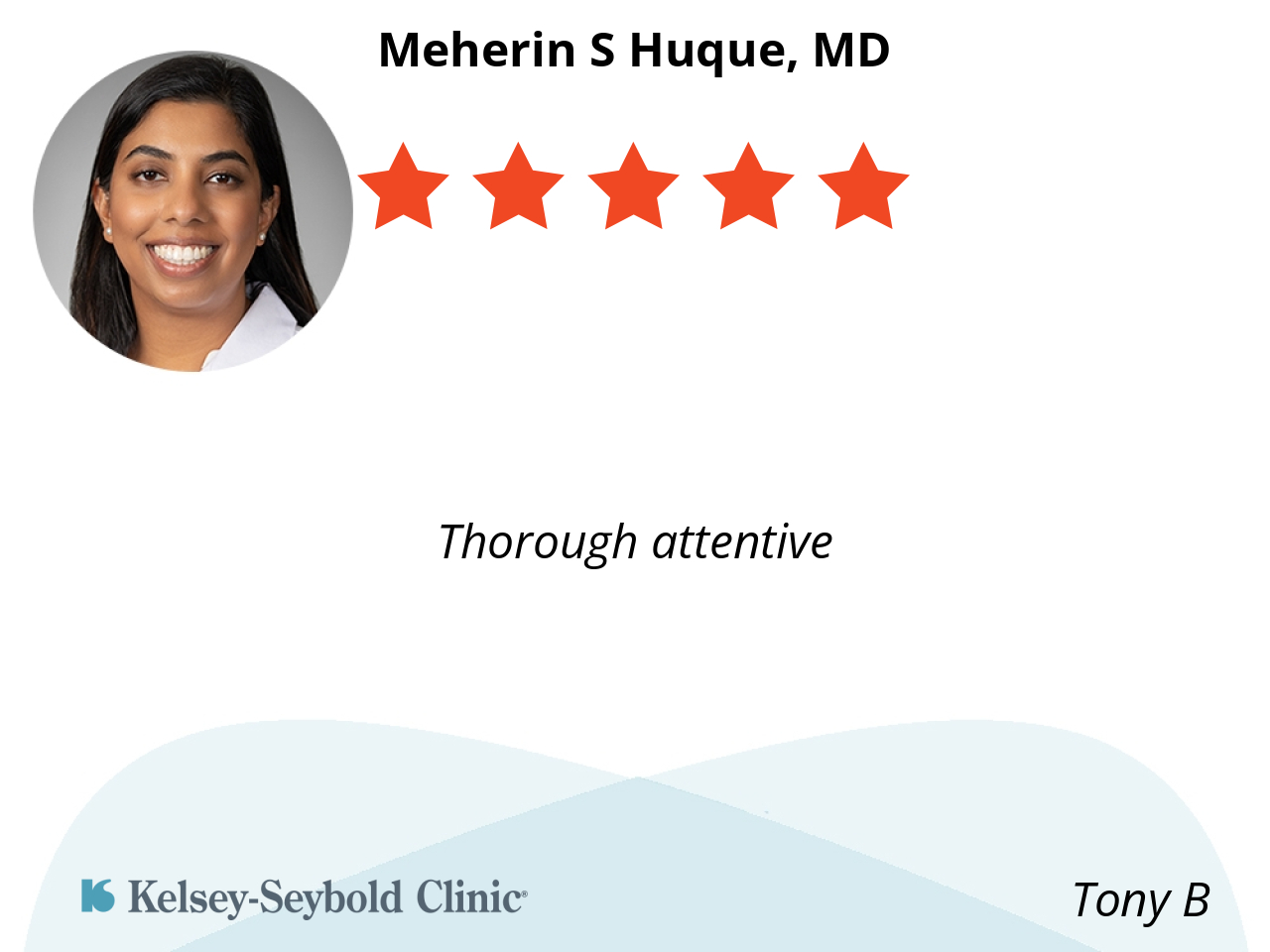 She’s very thorough and explains in a way that I can understand. Her bedside manner is very good.