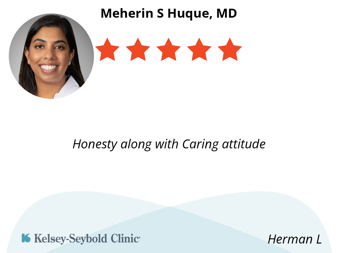 She is concerned about your health and patience with you she doesn’t rush you and asks your opinion about your health and she is concerned about you.