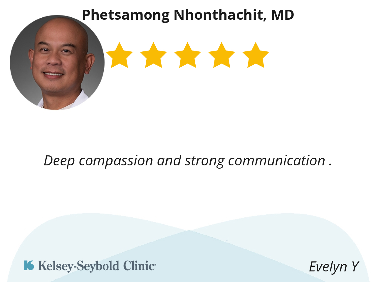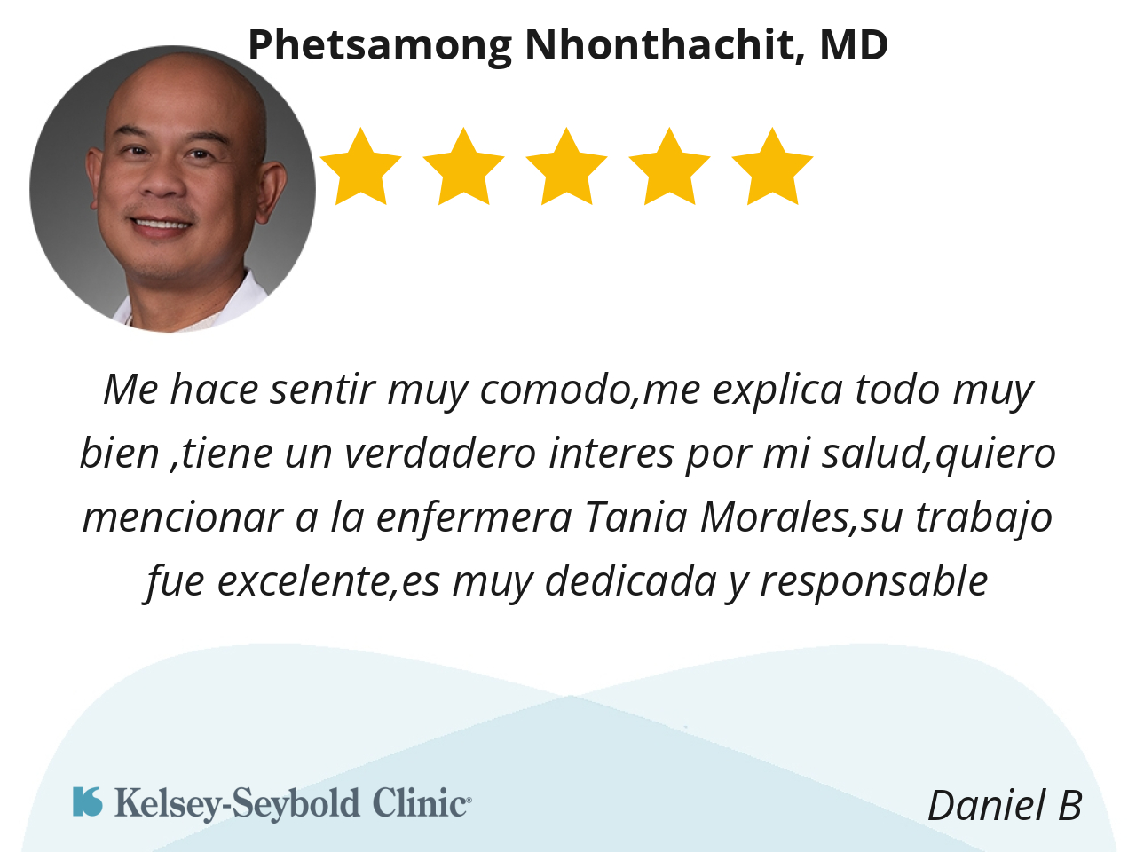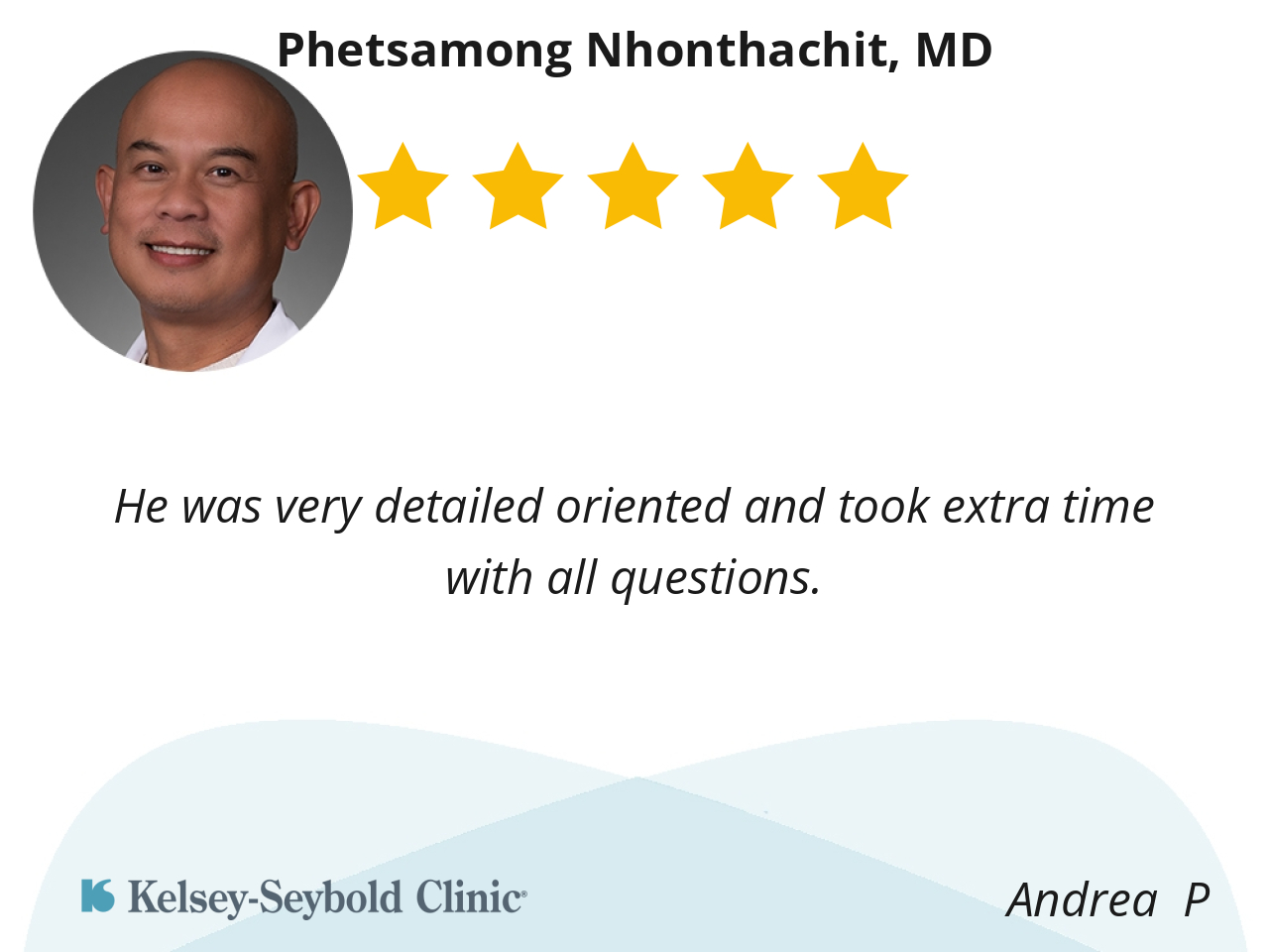I like Dr. Nhonthachit because every time I have a visit with him he takes the time to hear out my problems, he explains everything in detail, he’s very personable, knowledgeable and he makes you feel like he really cares about your health.