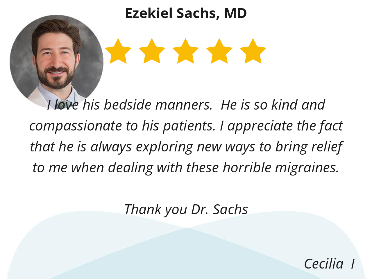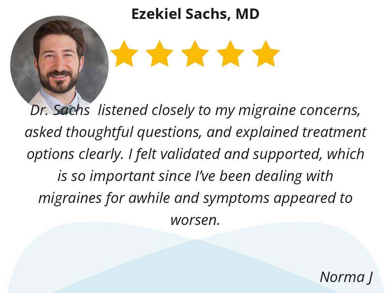 Dr. Sachs listened closely to my migraine concerns, asked thoughtful questions, and explained treatment options clearly. I felt validated and supported, which is so important since I’ve been dealing with migraines for awhile and symptoms appeared to worsen.