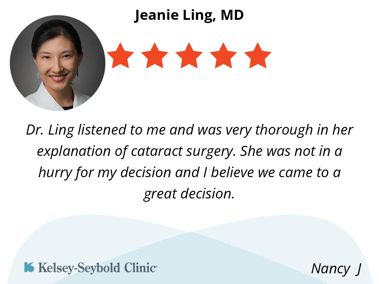 Dr. Ling listened to me and was very thorough in her explanation of cataract surgery. She was not in a hurry for my decision and I believe we came to a great decision.