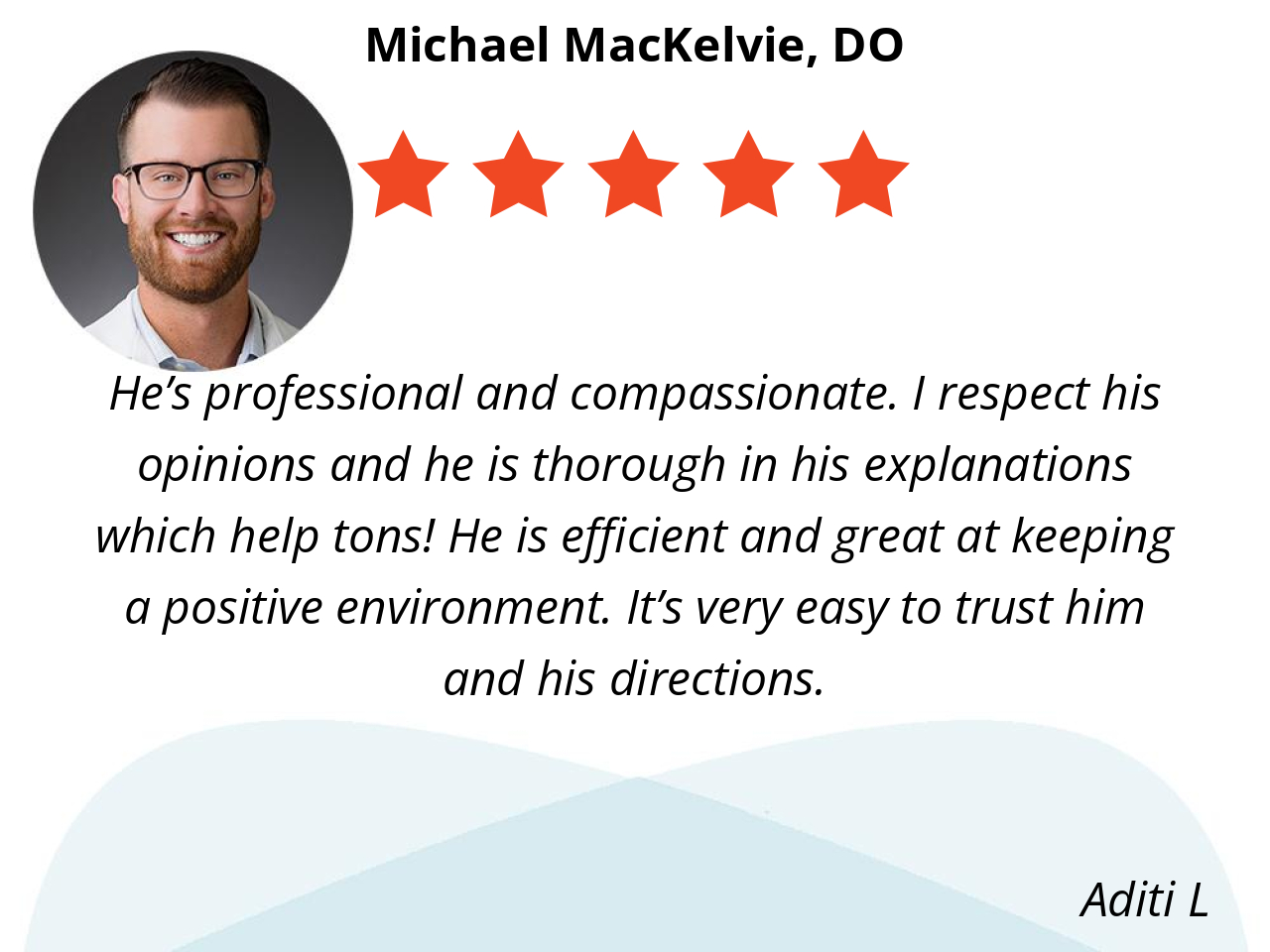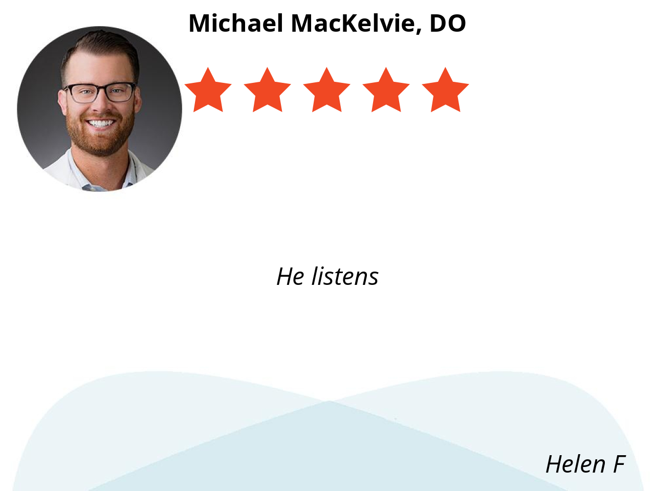 We love Dr. MacKelvie, he is so fast to respond and he is very knowledgeable. Dr. MacKelvie makes sure we leave every appointment with all the information or clarification we need. Response time is phenomenal even on the weekends. If I have any questions I am able to message him through the app and know I will get a response the latest by the next day. This is a Dr that truly loves his job and it shows.