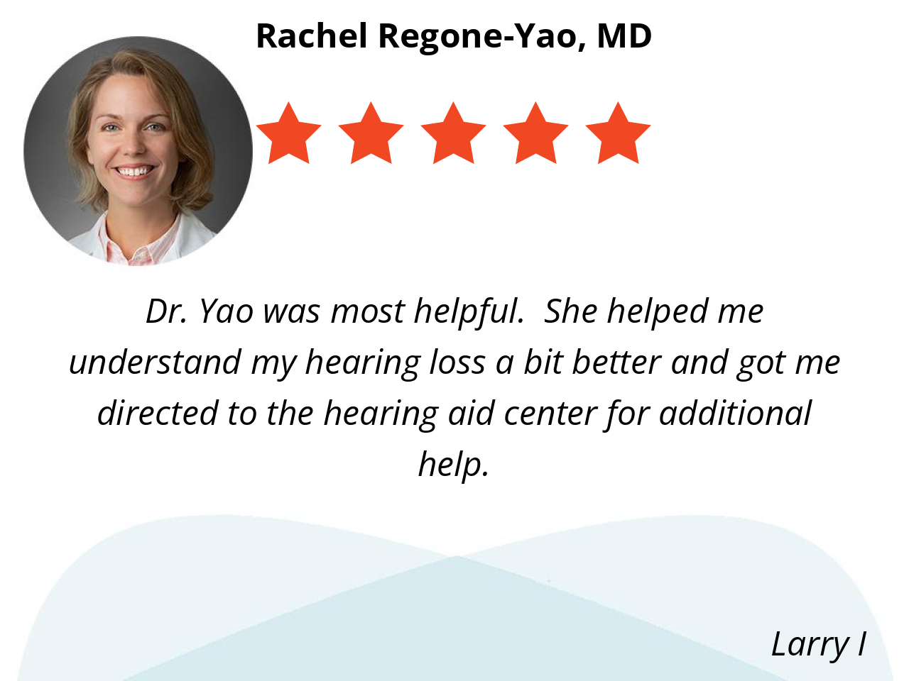 Dr. Yao was most helpful. She helped me understand my hearing loss a bit better and got me directed to the hearing aid center for additional help.