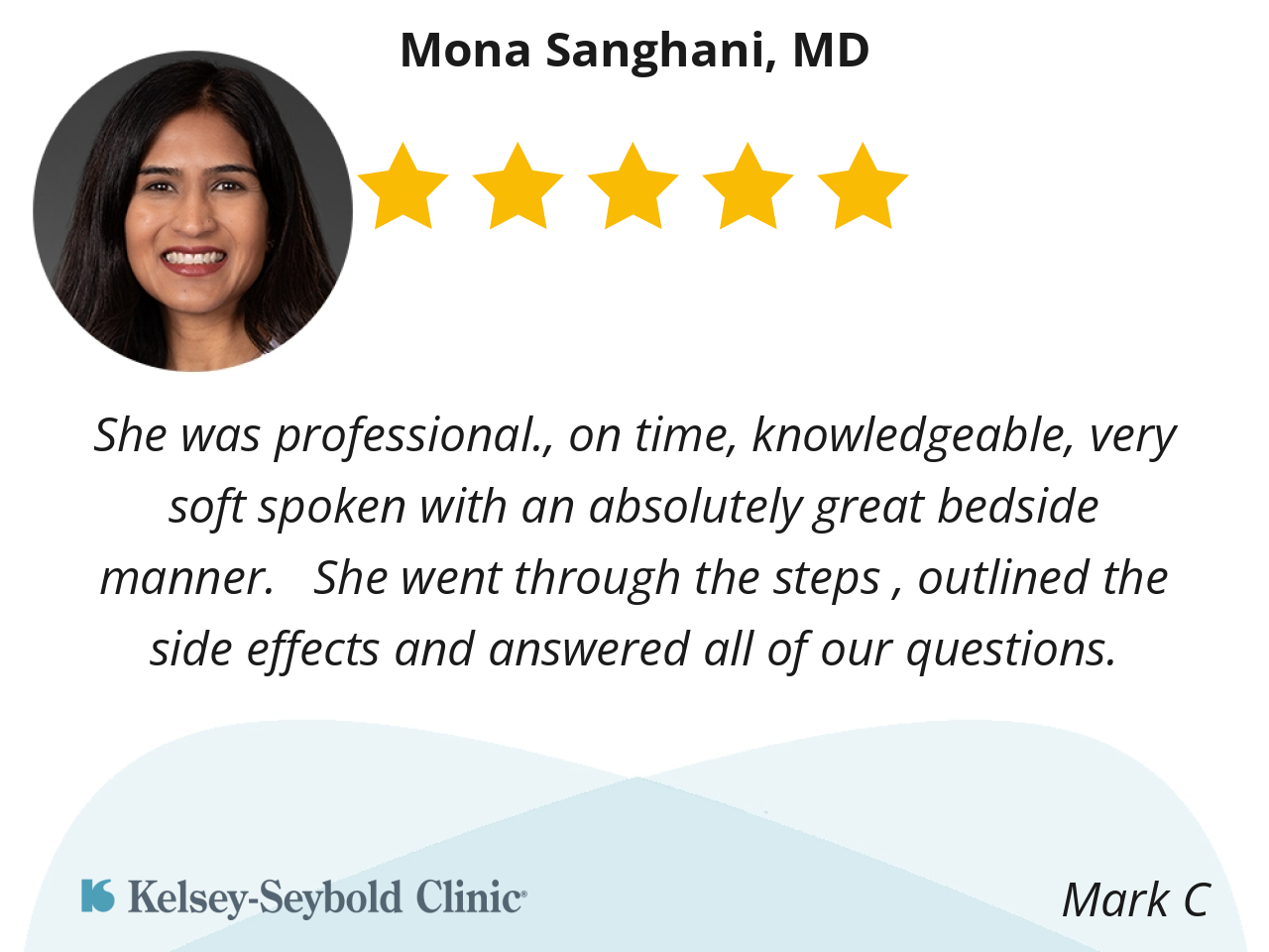 Dr. Saghani is attentive and very good at addressing my concerns.
