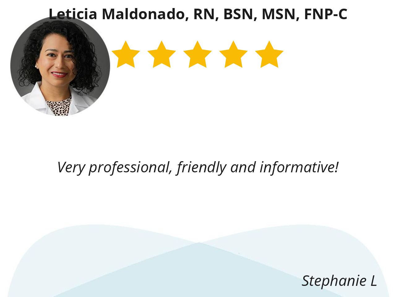 She's has such amazing bedside manner. So knowledgeable and explains things clearly but she also listens to all my concerns. I never feel like she's rushing me. She's been so amazing through the sleep study and CPAP process. I was so nervous about it, but if I would have known it was this easy, I would have done it a long time ago! Dr. Maldonado is amazing and I highly recommend her!!!