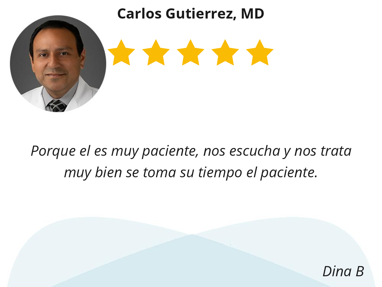 Dr. Gutierrez, Listens, understands, then he helps/suggests/prescribes & supports. He is Good Doctor.