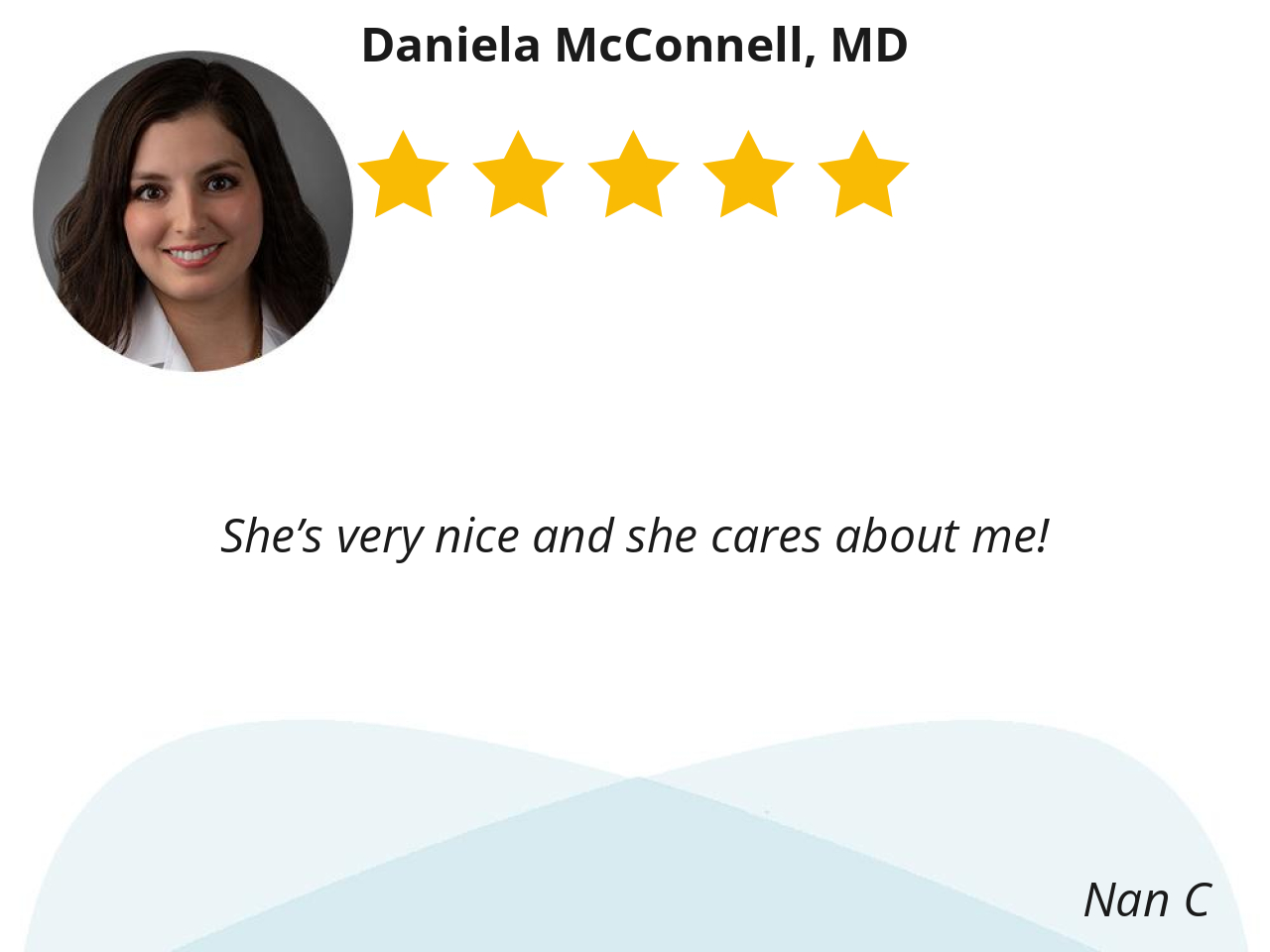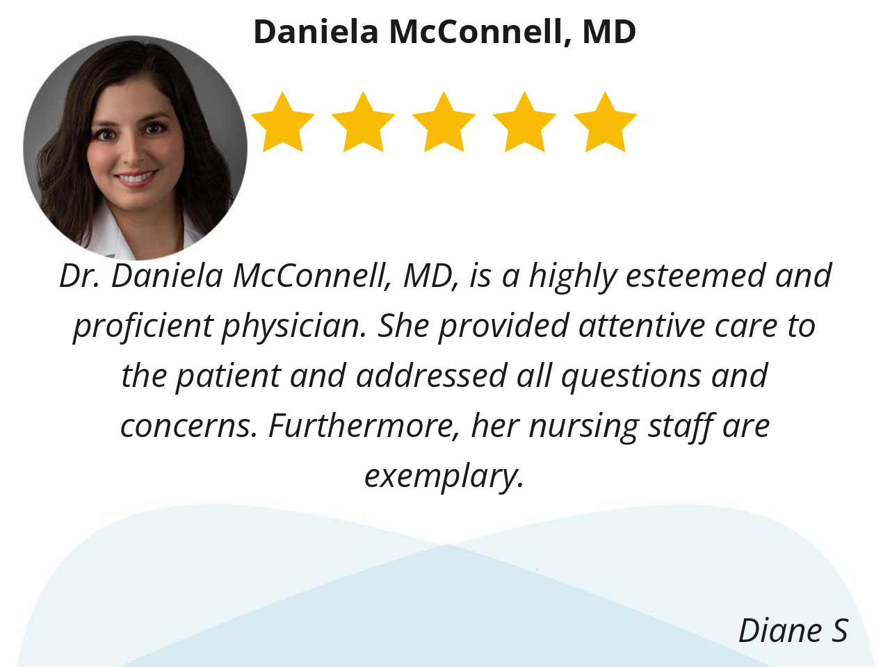 Dr. Daniela McConnell, MD, is a highly esteemed and proficient physician. She provided attentive care to the patient and addressed all questions and concerns. Furthermore, her nursing staff are exemplary.