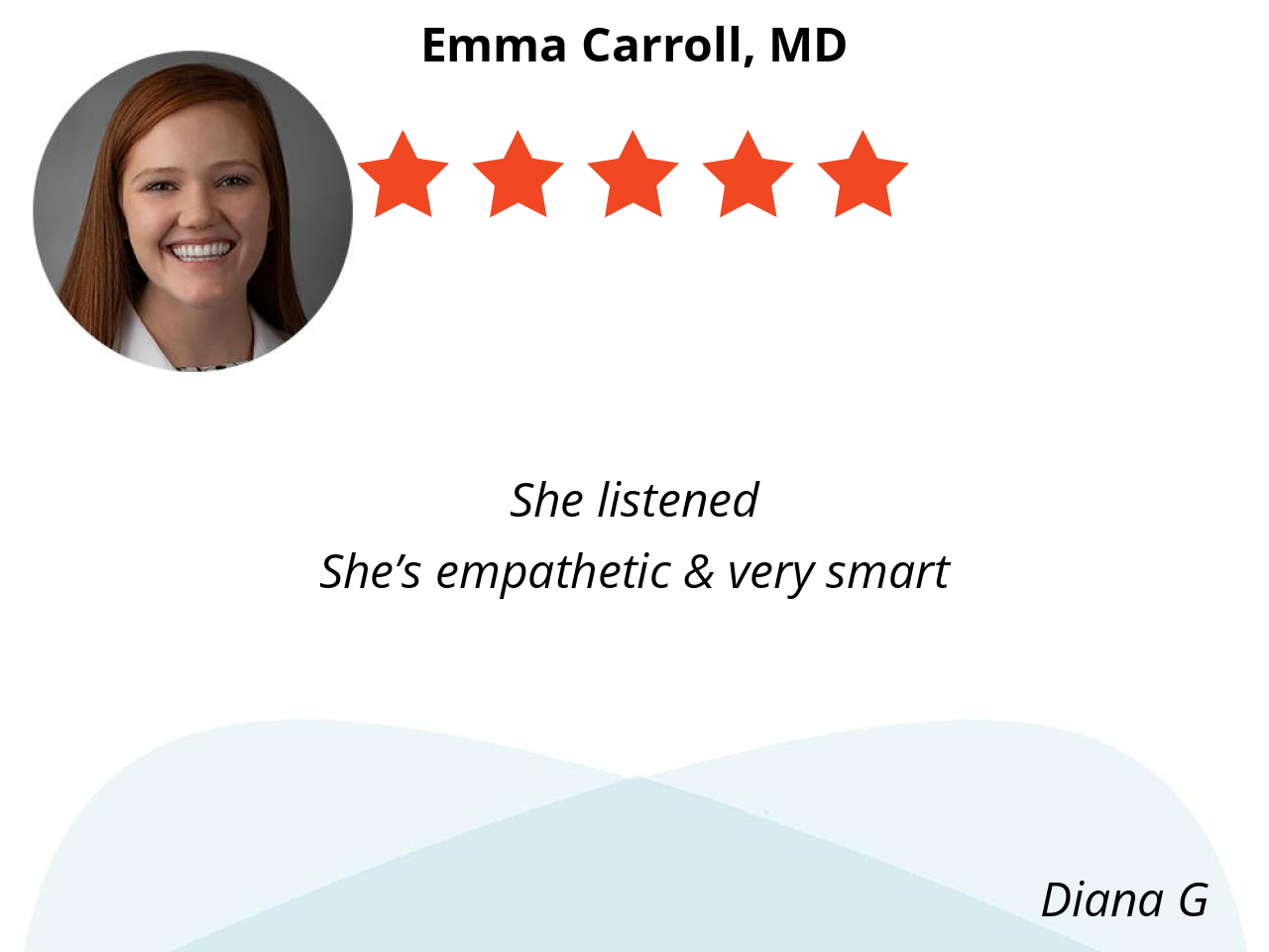 Dr. Carroll is the best! She takes the time to listen to all your concerns to come up with the best care plan.