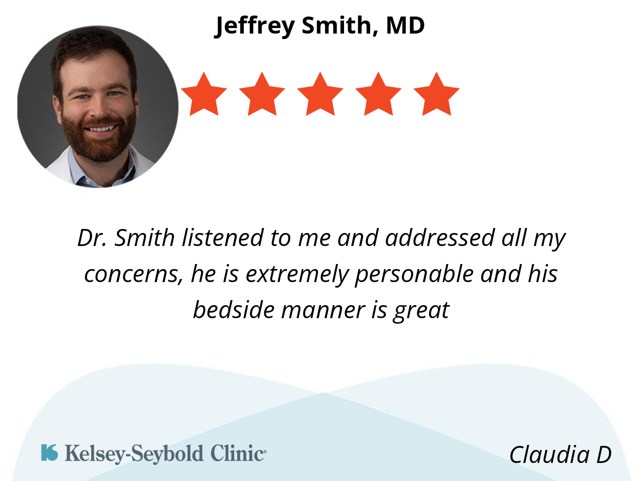 Dr. Smith listened to me and addressed all my concerns, he is extremely personable and his bedside manner is great