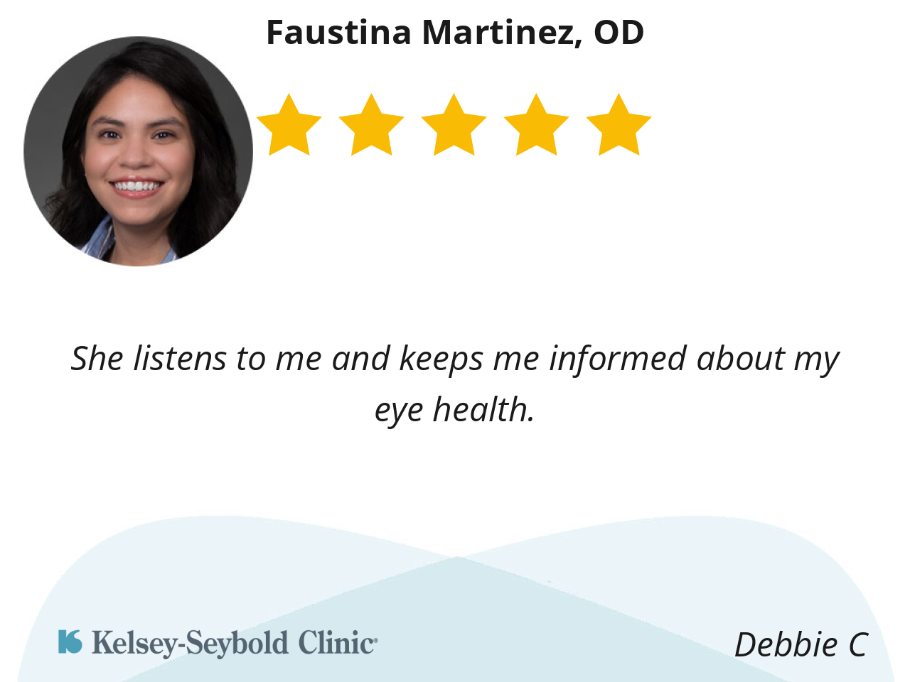 She listens to me and keeps me informed about my eye health.