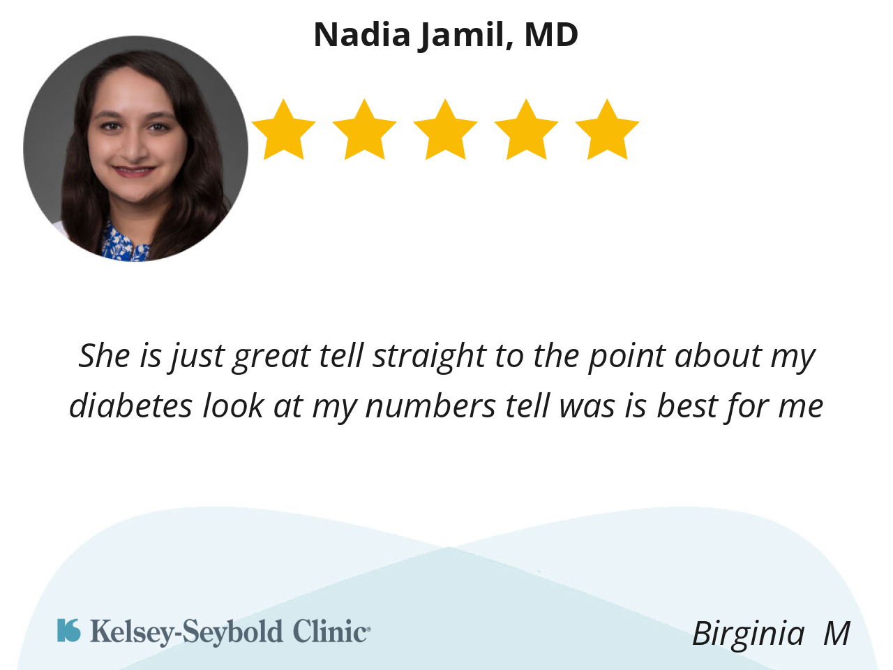 Dr. Jamil is amazing with her information on my test results. I appreciate my visit with her. She is very nice.