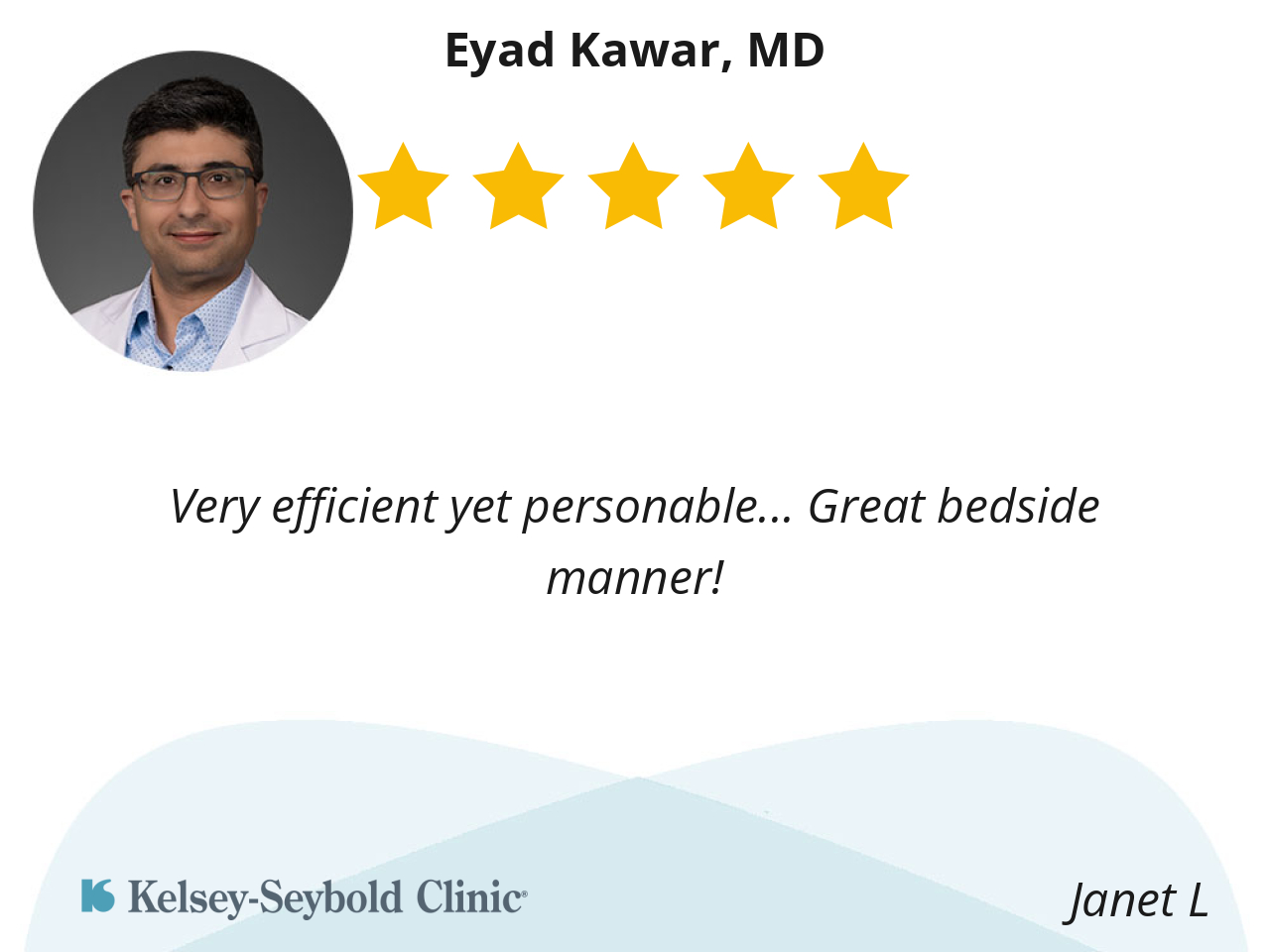 Excellent doctor. Very knowledgeable and compassionate. Very happy to have Dr Kawar as my doctor.