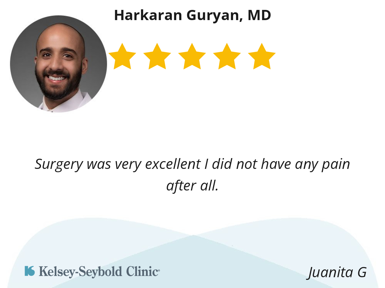 I truly appreciate the time, attention, and care Dr. Guryan gave to me as a patient. He made sure I had all my questions answered and I never felt rushed. He also does a great job of making complicated things easy to understand. Very grateful to have him as my surgeon.