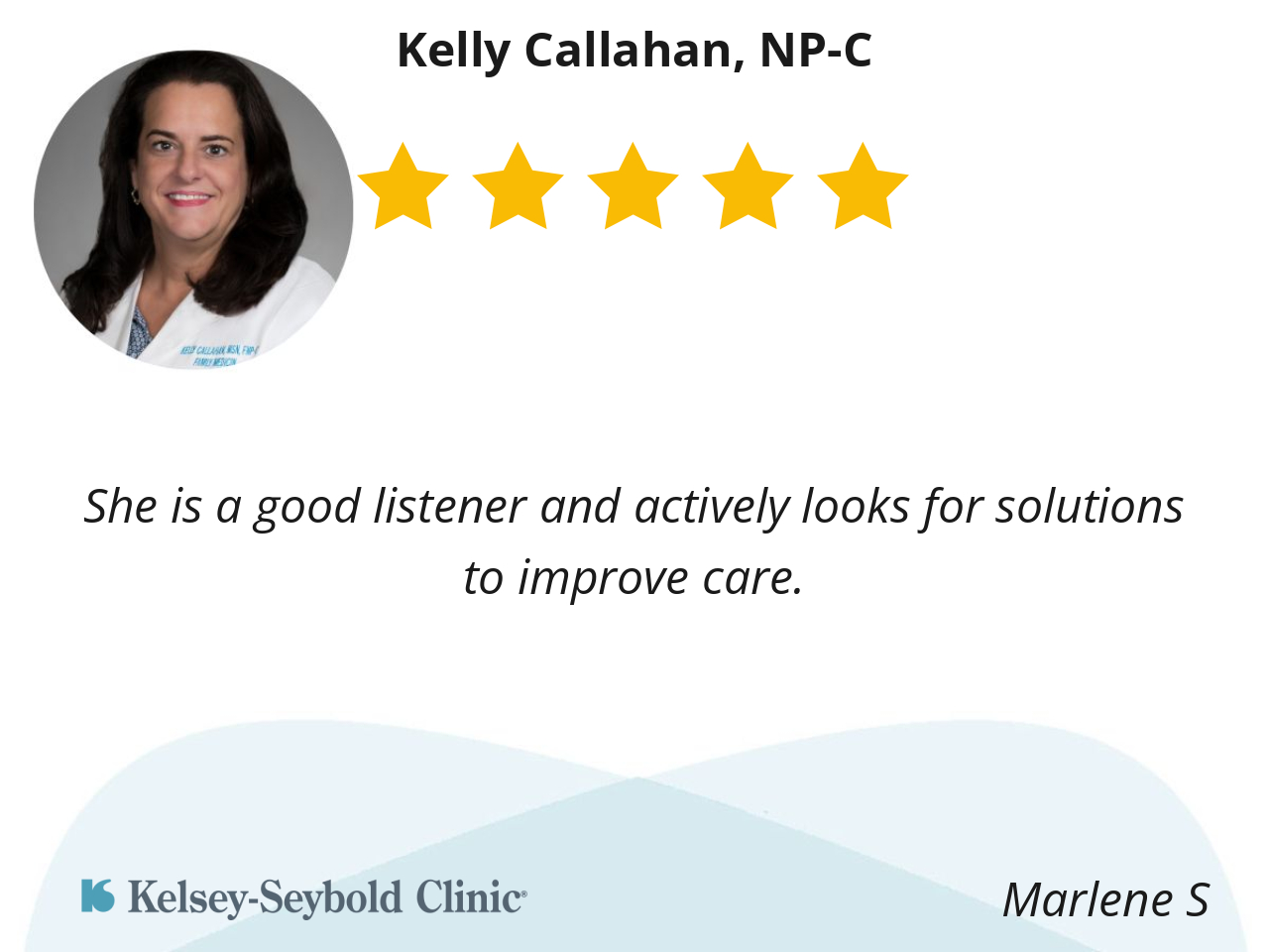 Dr Callahan seems to listen when I'm explaining my issues. Easy to talk to. She's involved.