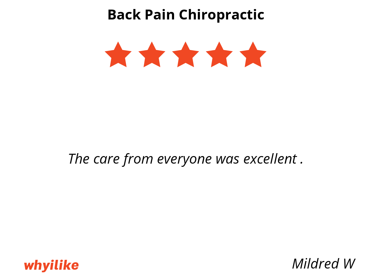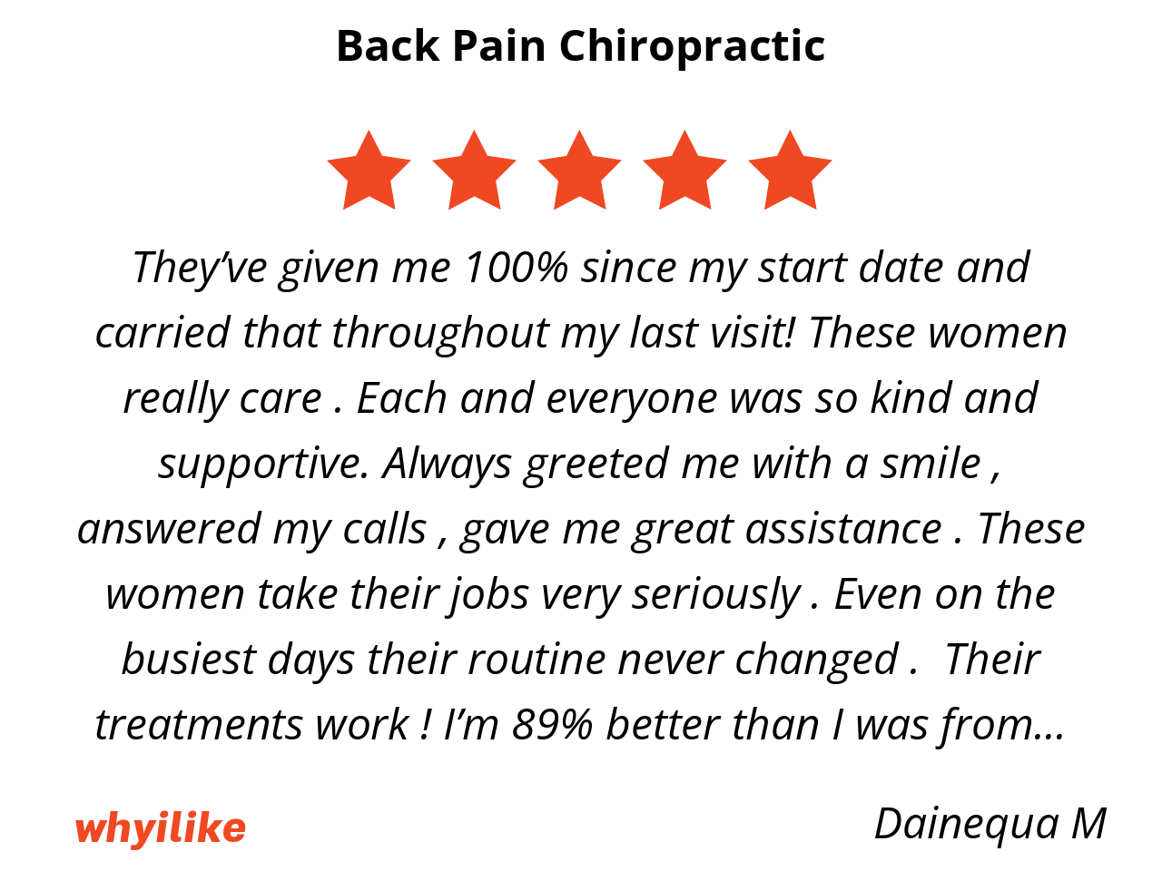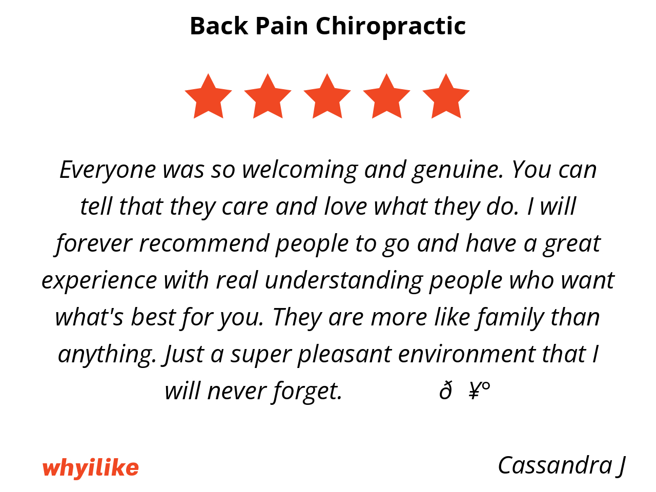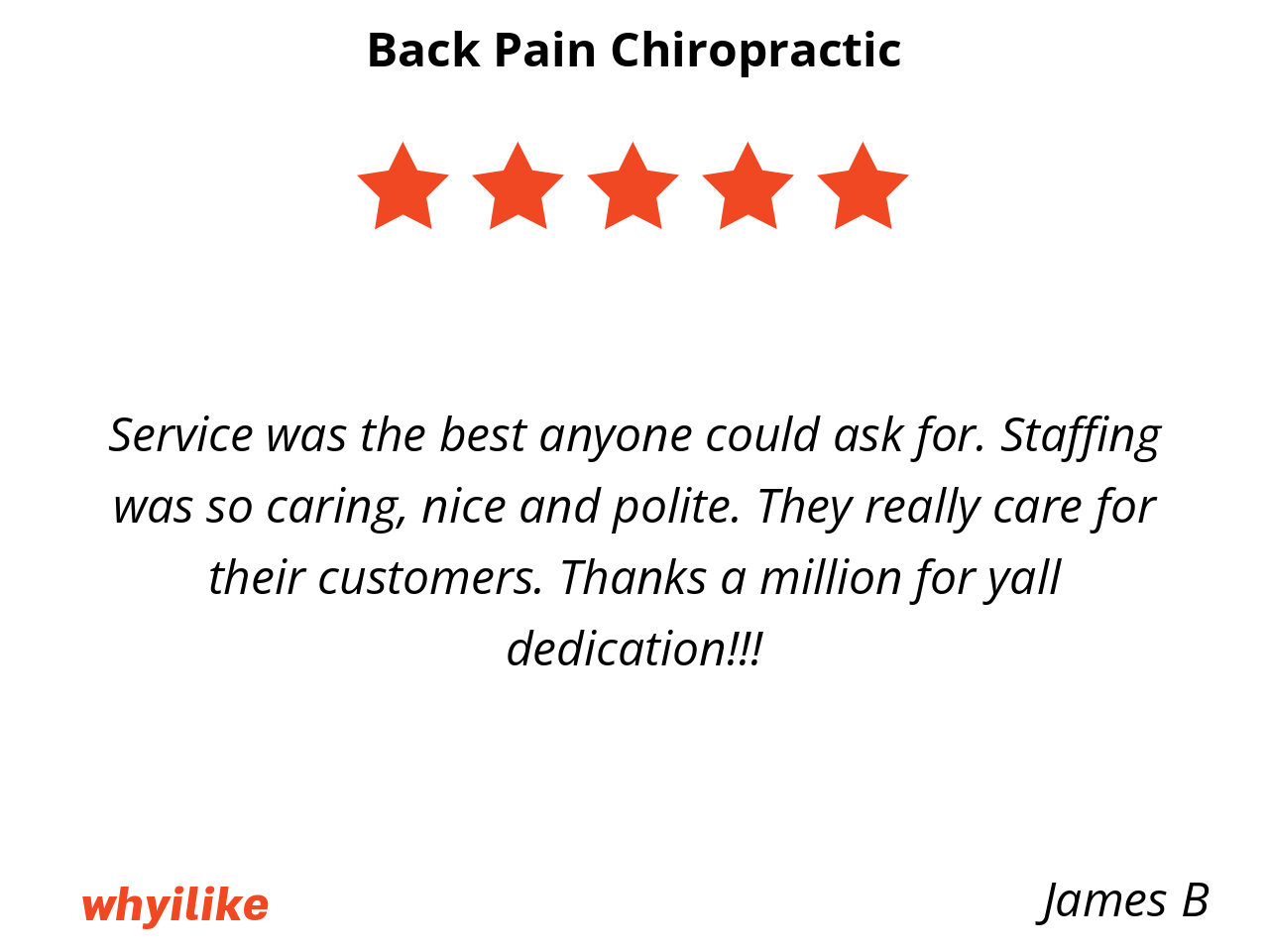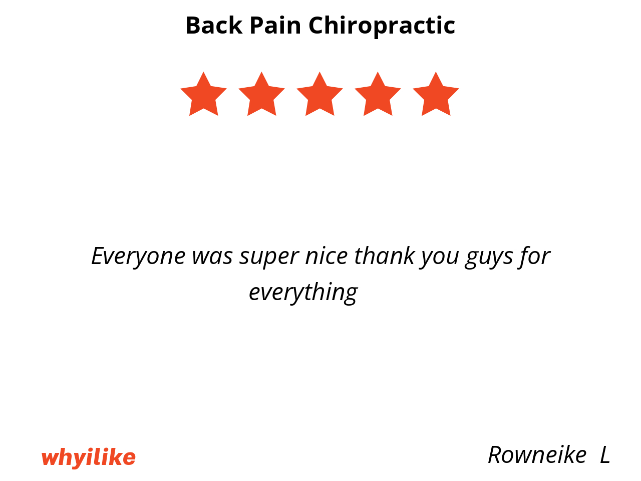 Very much so be the professional nurses and doctors very down to earth they treat people with respect and honor each of their clients this back in pain clinic I recommend highly to anyone and everyone that have had some form of incident of injury this doctor of this facility is very outstanding she's very professional very caring very considerate as far as I'm concerned there is no other doctor of chiropractic is better than she she is the number one leading chiropractic Doctor that I recommend and her staff of nurses is very much so much as she very caring very professional and treat each client with care.