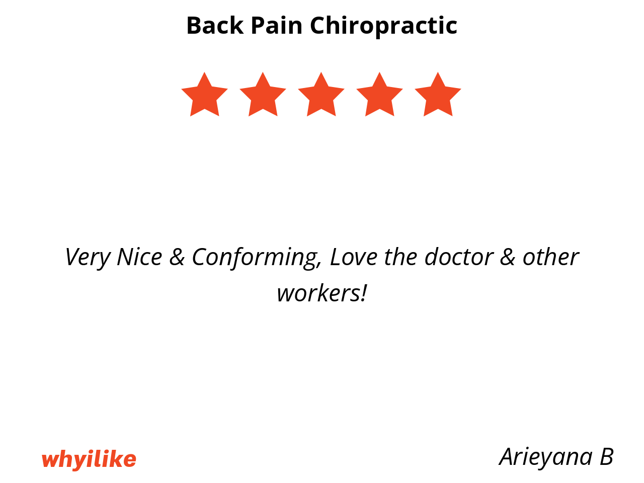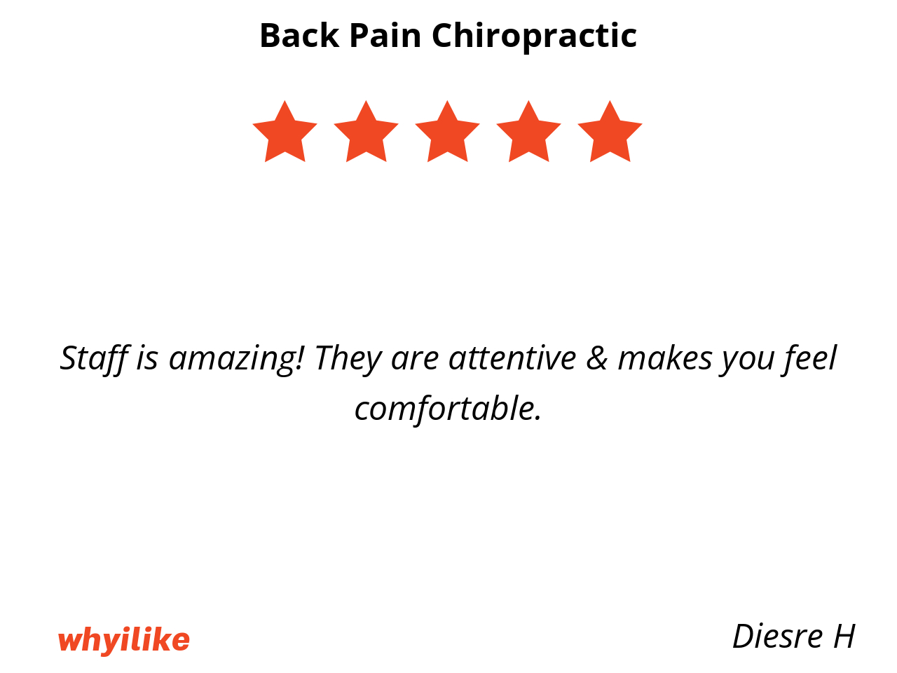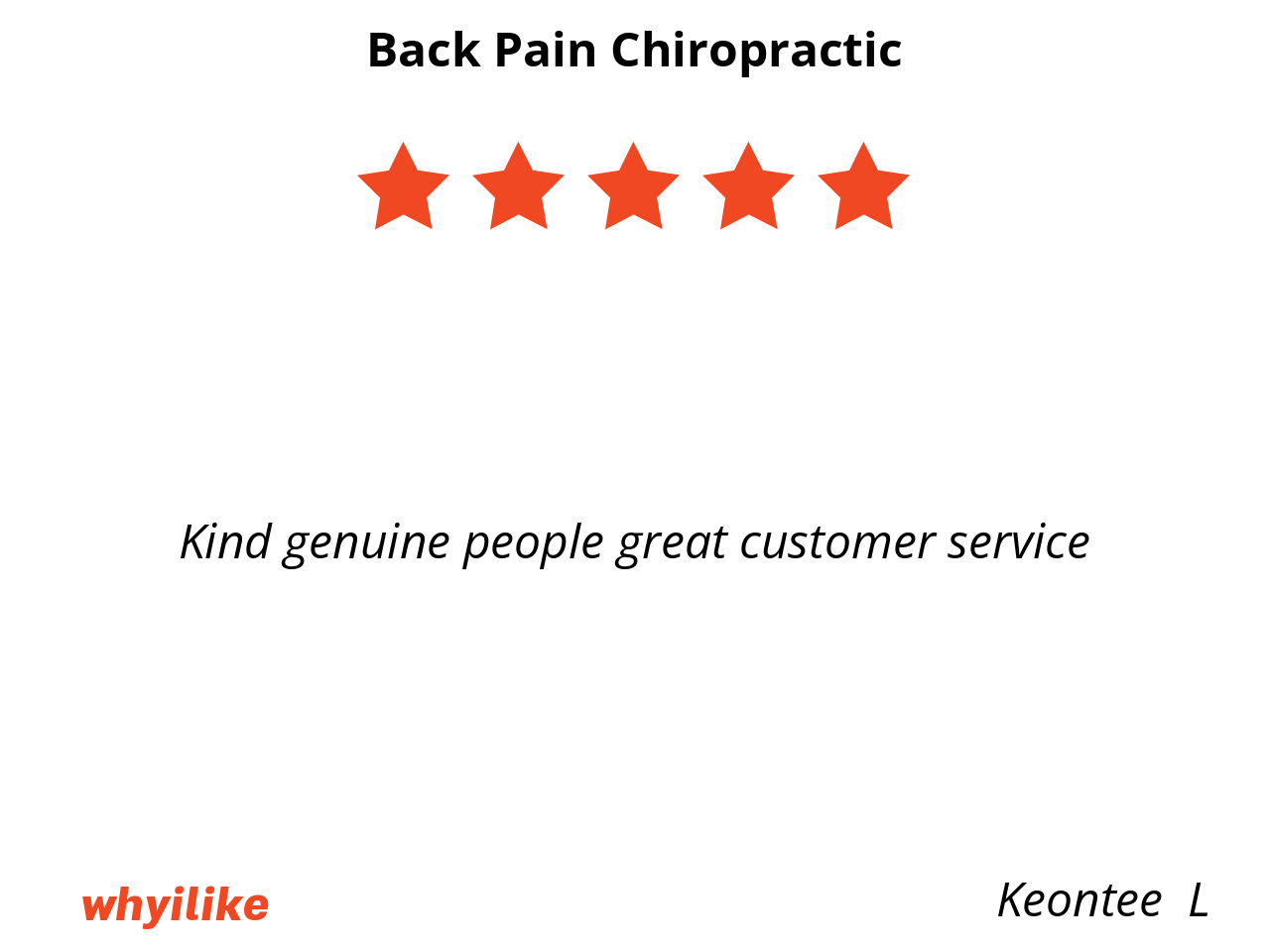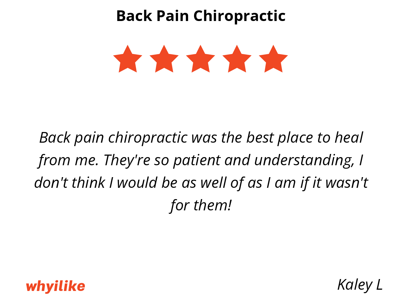 Back pain chiropractic was the best place to heal from me. They're so patient and understanding, I don't think I would be as well of as I am if it wasn't for them!