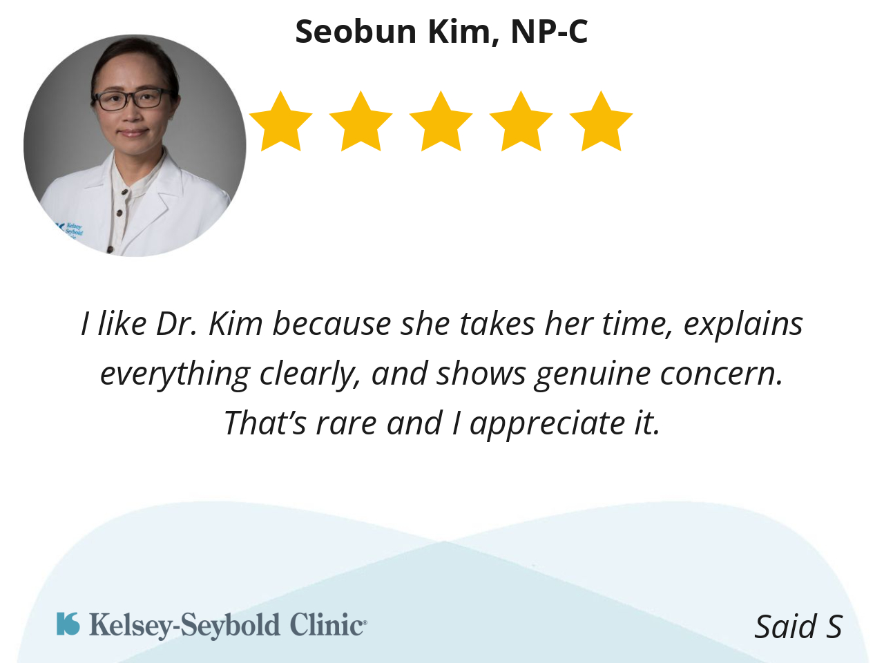 I like Dr. Kim because she takes her time, explains everything clearly, and shows genuine concern. That’s rare and I appreciate it.