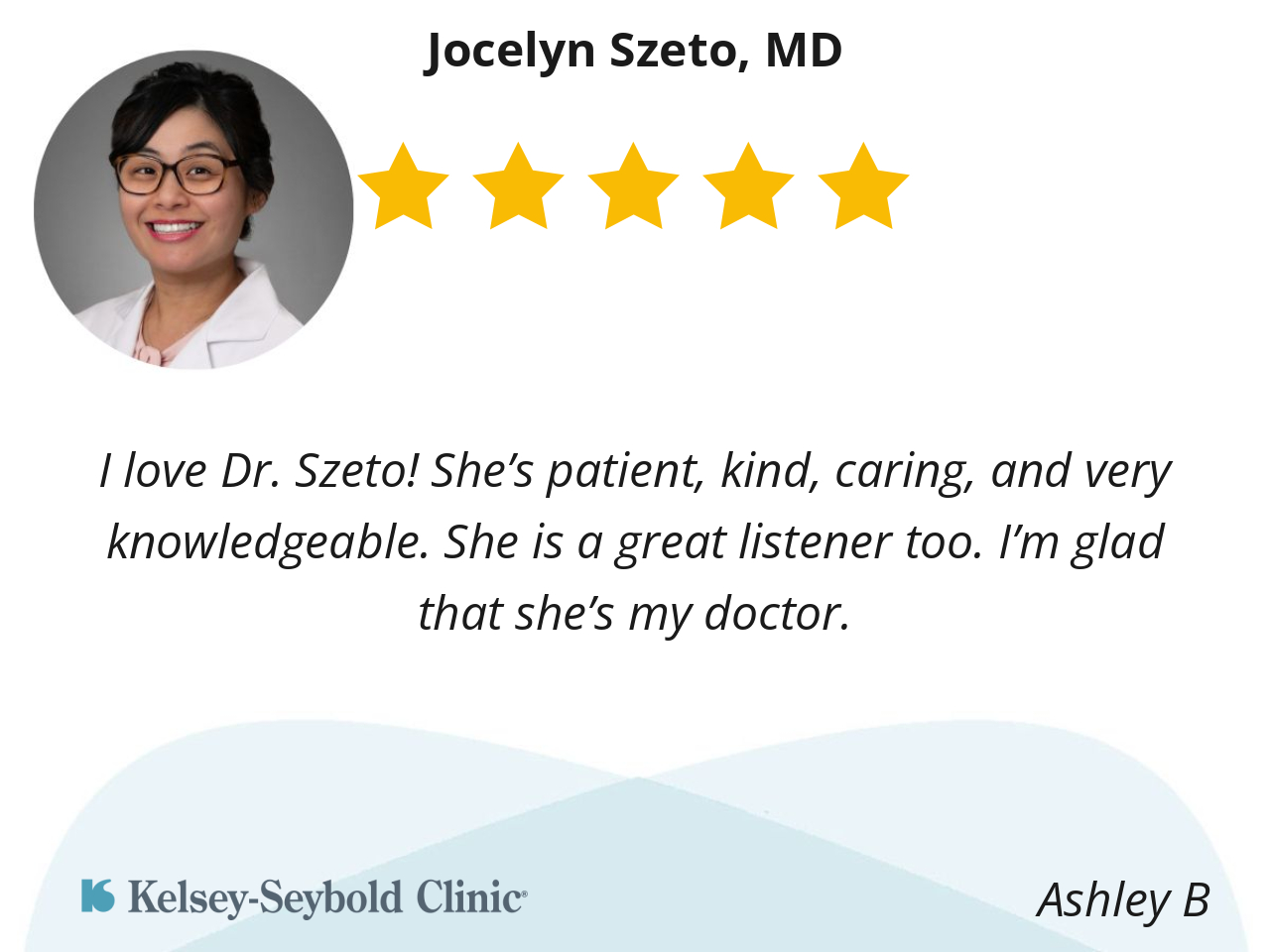 I love Dr. Szeto! She’s patient, kind, caring, and very knowledgeable. She is a great listener too. I’m glad that she’s my doctor.