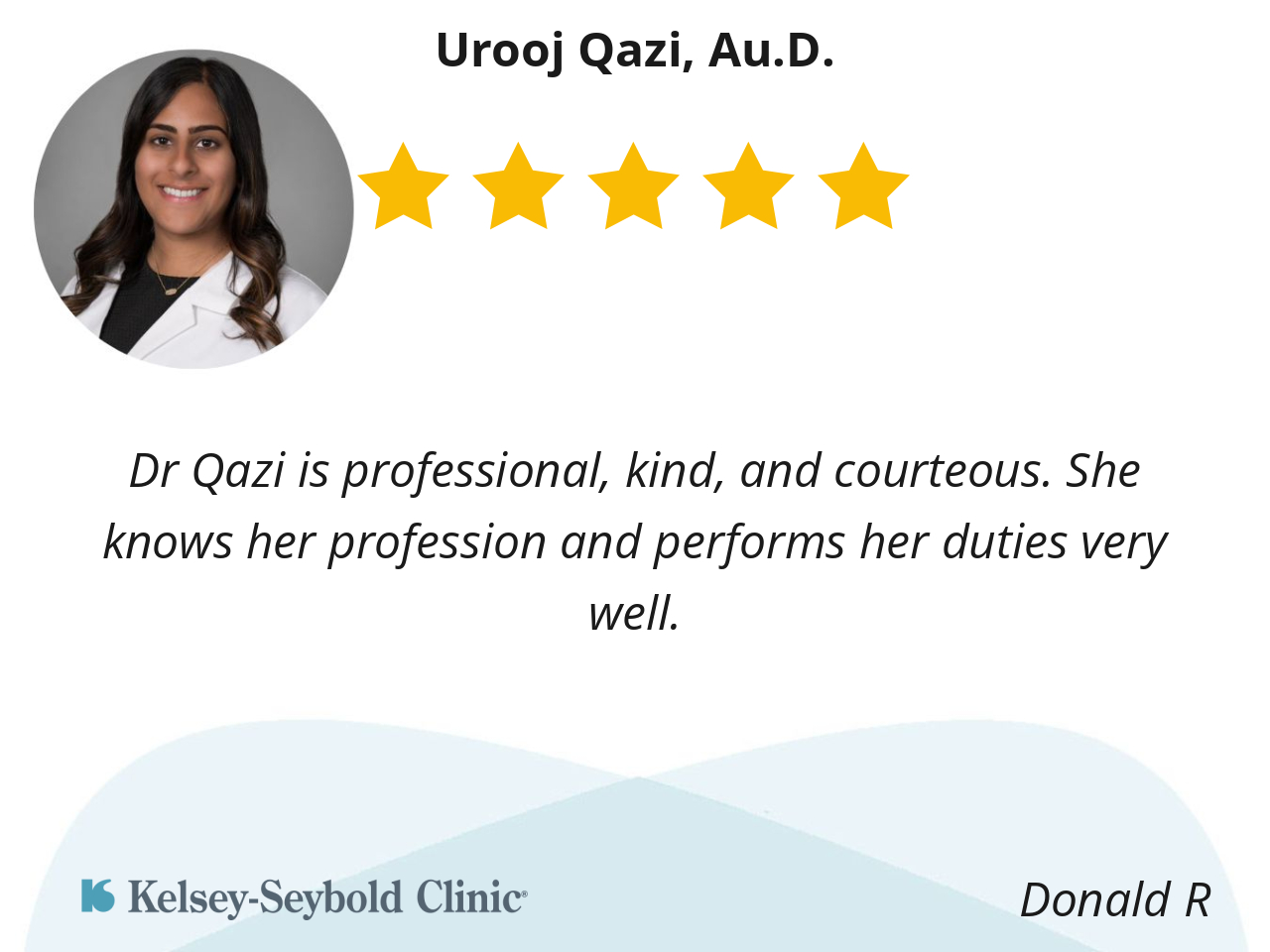 She is smart, has top clinical qualifications -- Au.D and CCC-A -- and listened and communicated well with me.