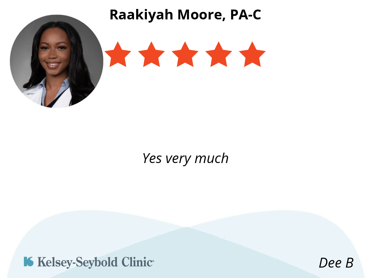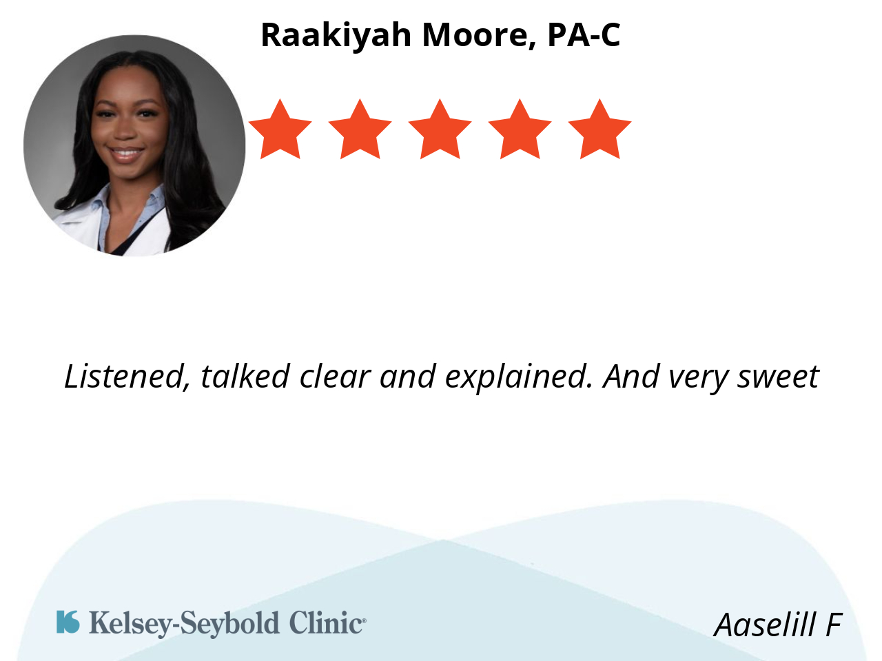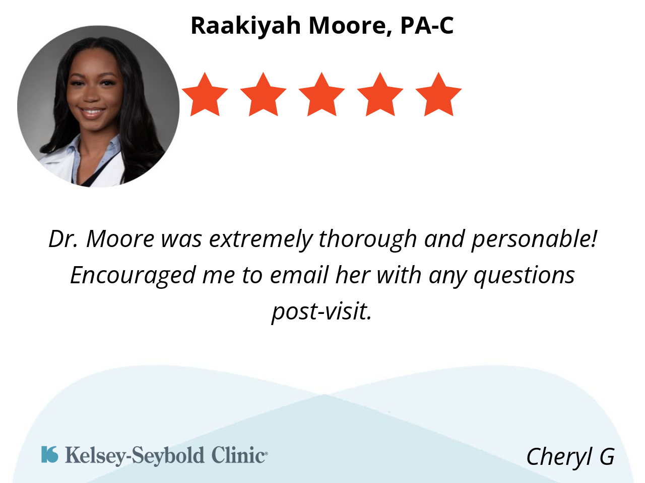 Dr. Moore was extremely thorough and personable! Encouraged me to email her with any questions post-visit.