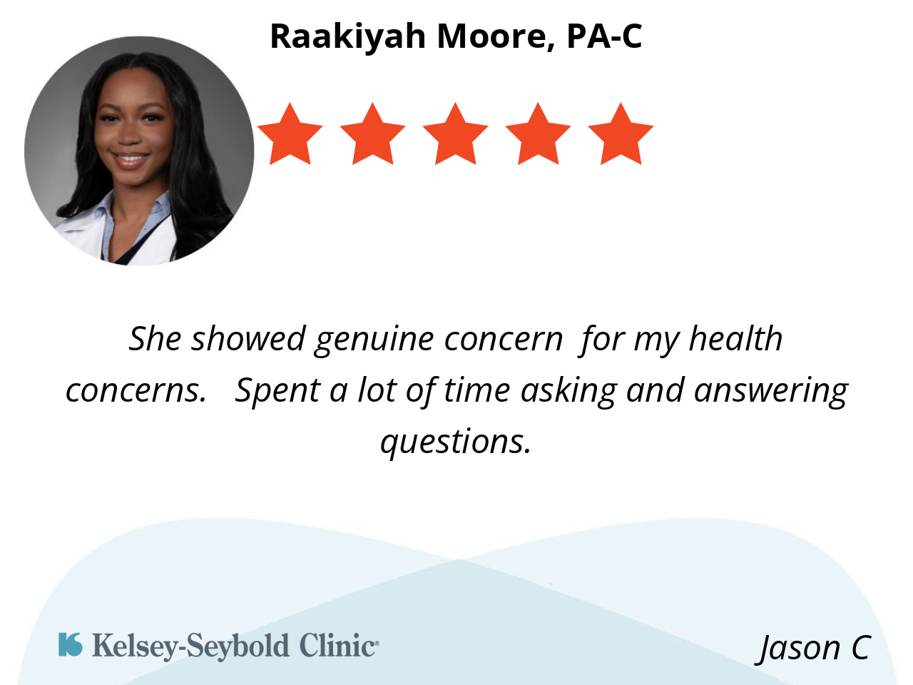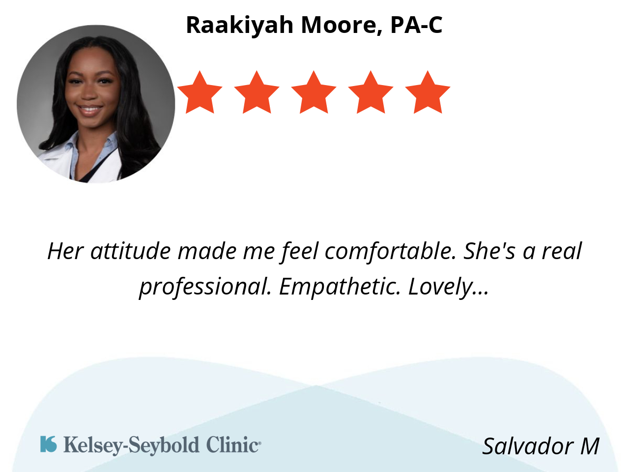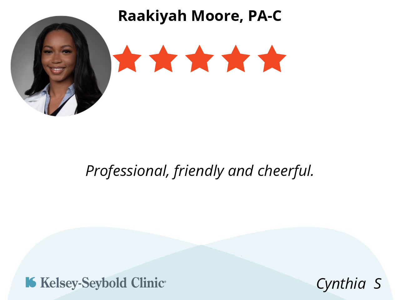 Dr. Moore was extremely thorough and personable! Encouraged me to email her with any questions post-visit.