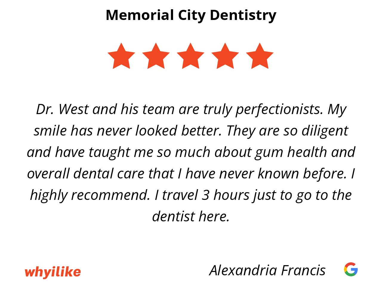 Dr. West and his team are truly perfectionists. My smile has never looked better. They are so diligent and have taught me so much about gum health and overall dental care that I have never known before. I highly recommend. I travel 3 hours just to go to the dentist here.