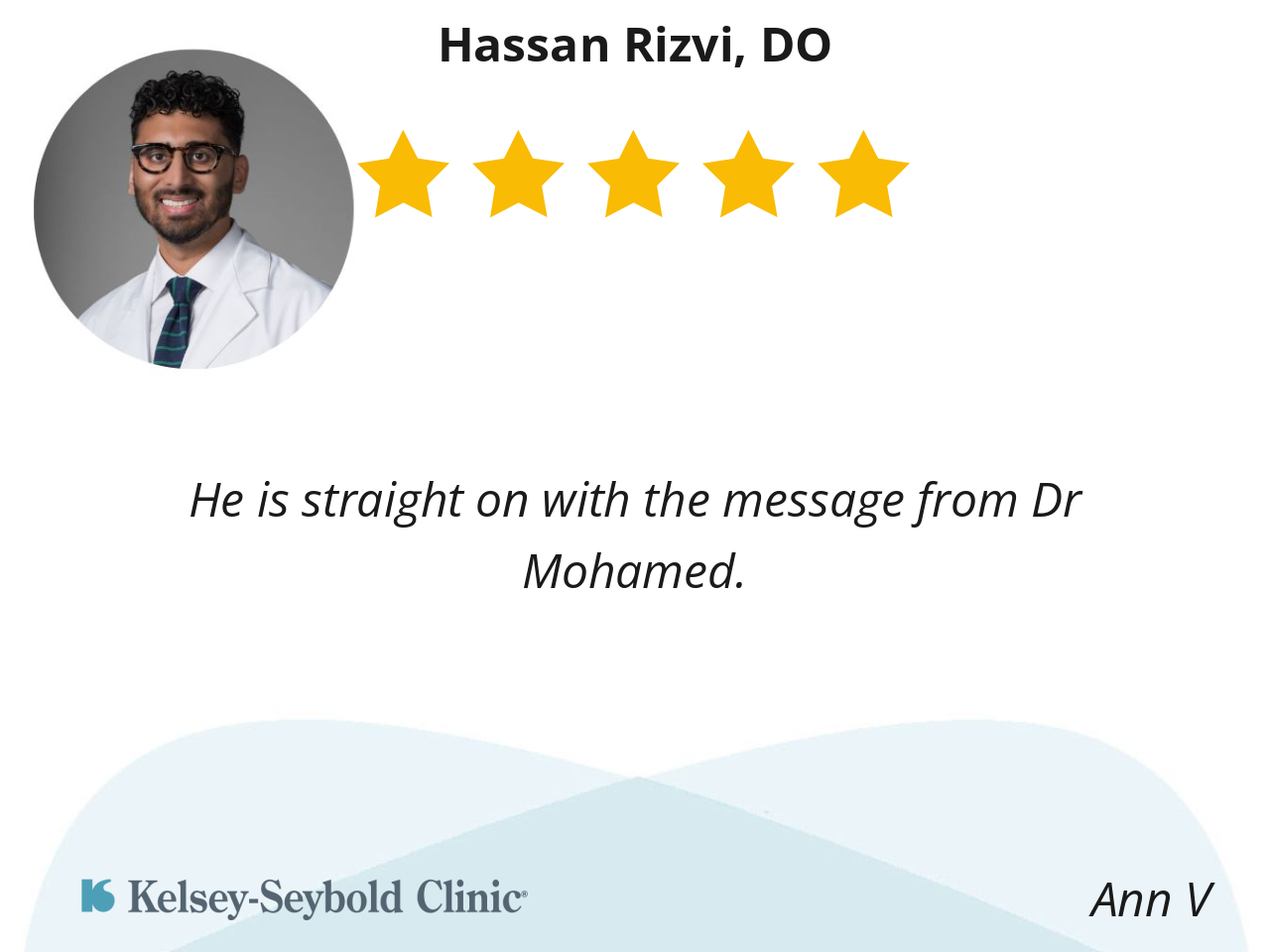 He was inquisitive, caring, informative and helpful. I recommend Dr. Rizvi.