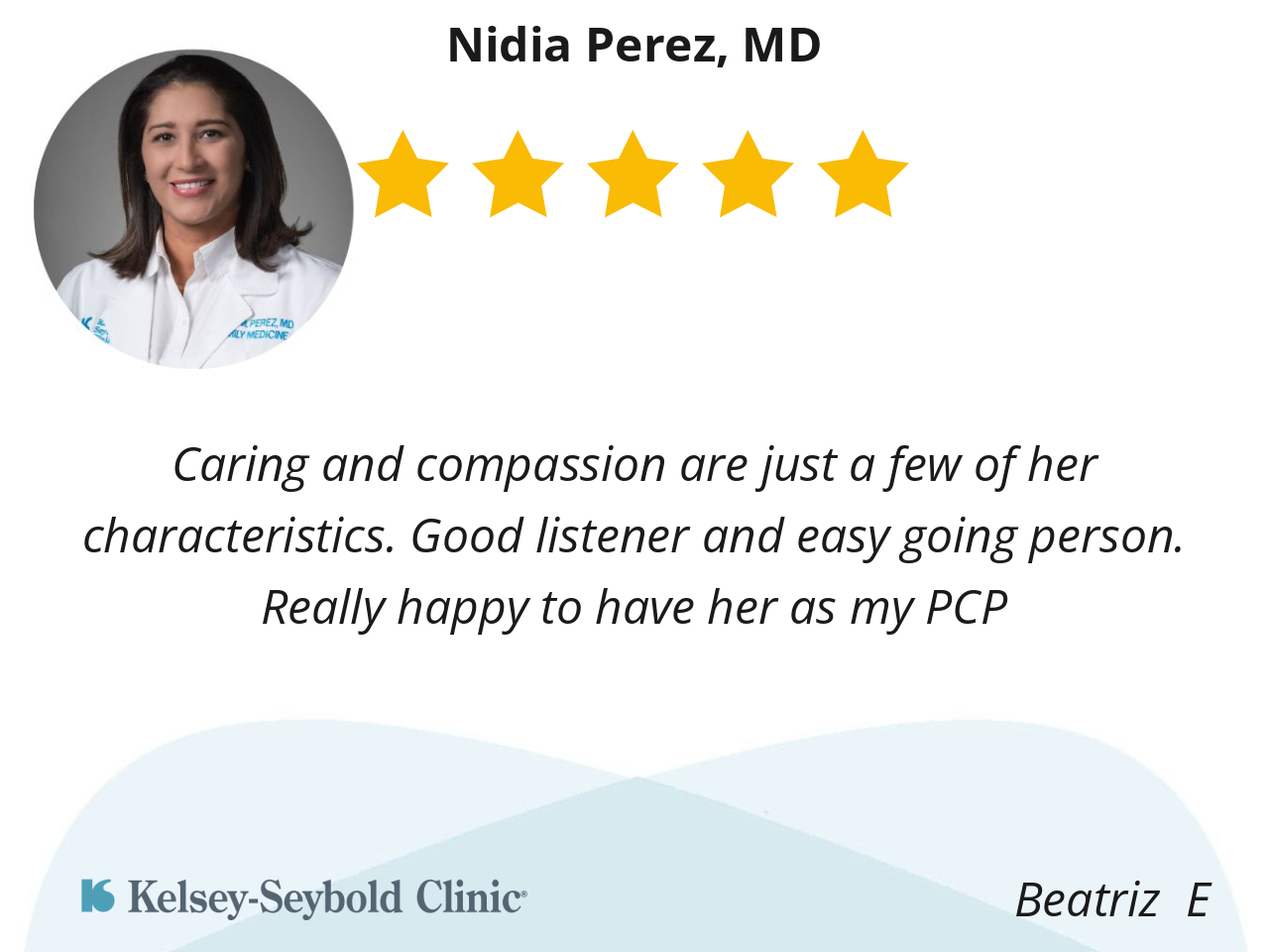 Caring and compassion are just a few of her characteristics. Good listener and easy going person. Really happy to have her as my PCP