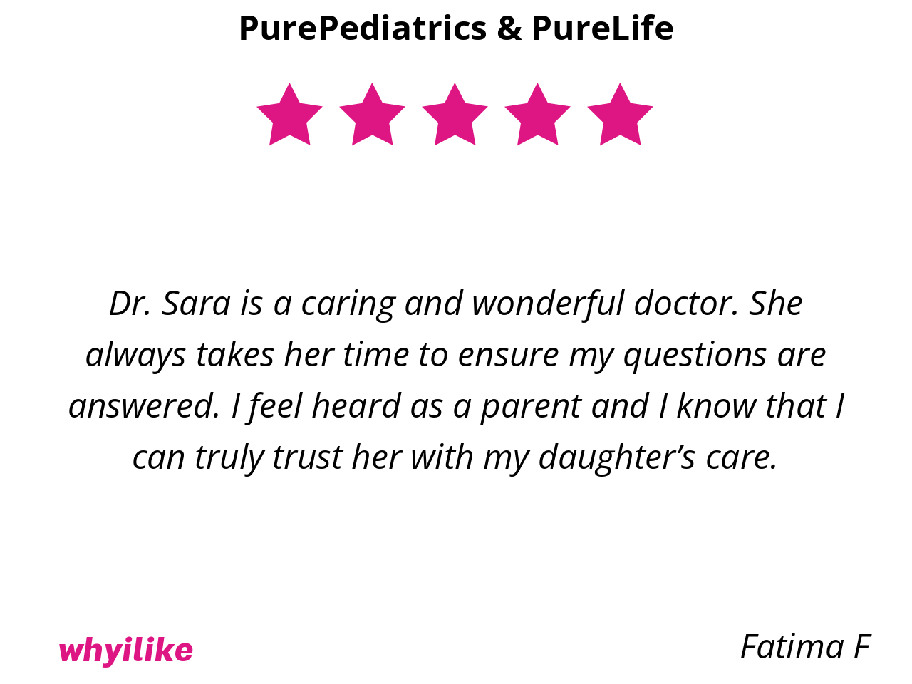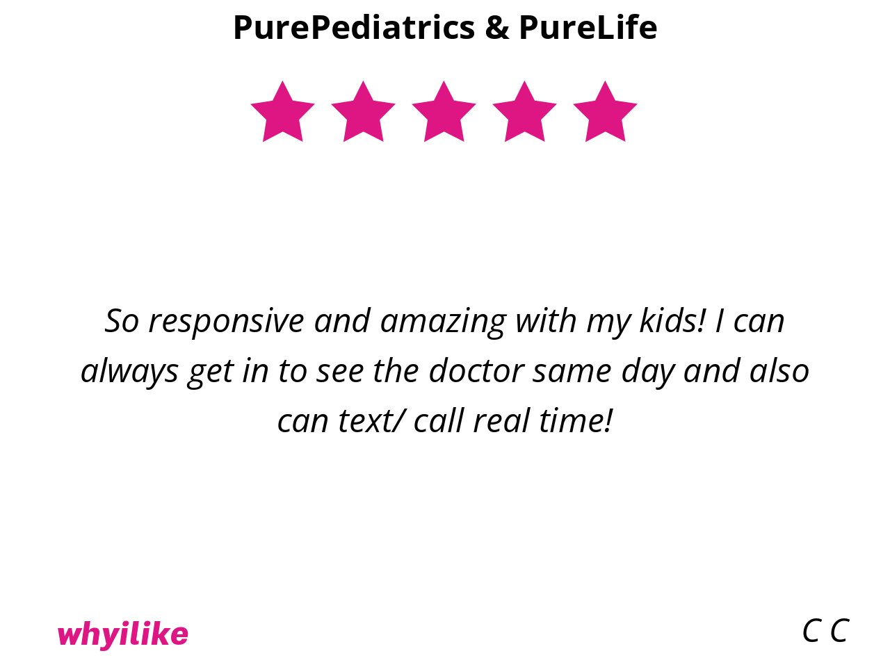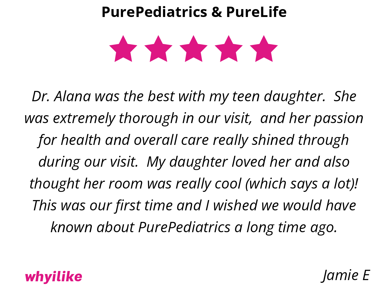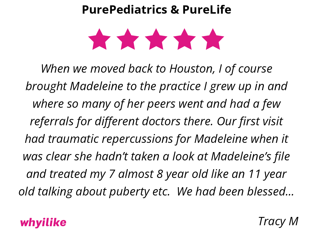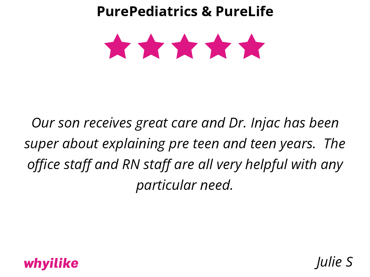 Well, they are simply the best around. Hands down, not even an exaggeration! I don’t have to worry about my baby and older daughter’s health bc PurePediatrics has them covered and keeps them safe at all times. Every step of the way over the past 7 years has been an enormous blessing with them and we are so thankful we get to be patients in their practice.