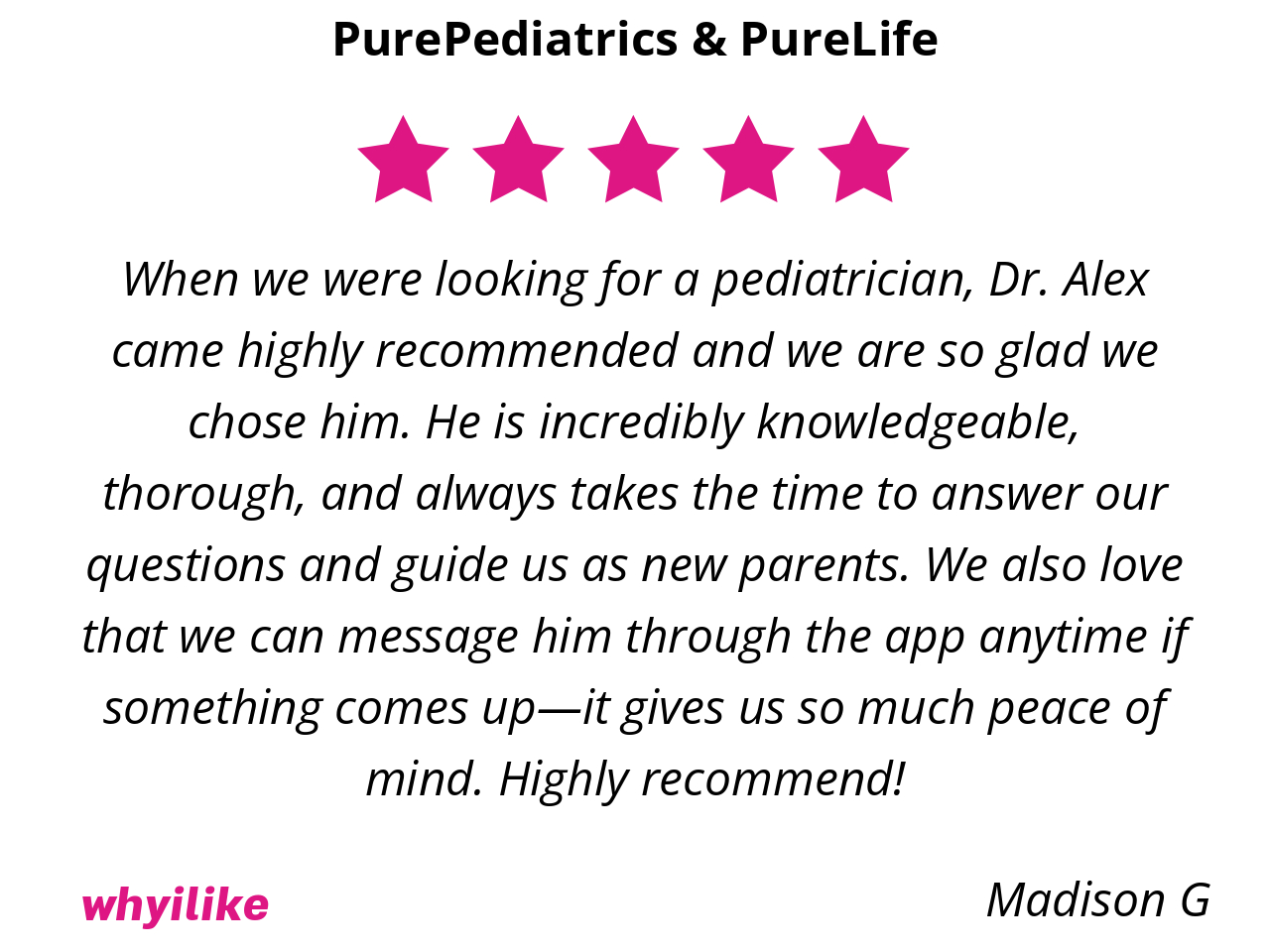 My wife and I are incredibly grateful we found Pure Pediatrics. We couldn’t recommend them more highly.
