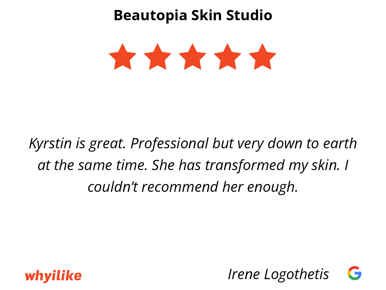 Kyrstin is great. Professional but very down to earth at the same time. She has transformed my skin. I couldn’t recommend her enough.