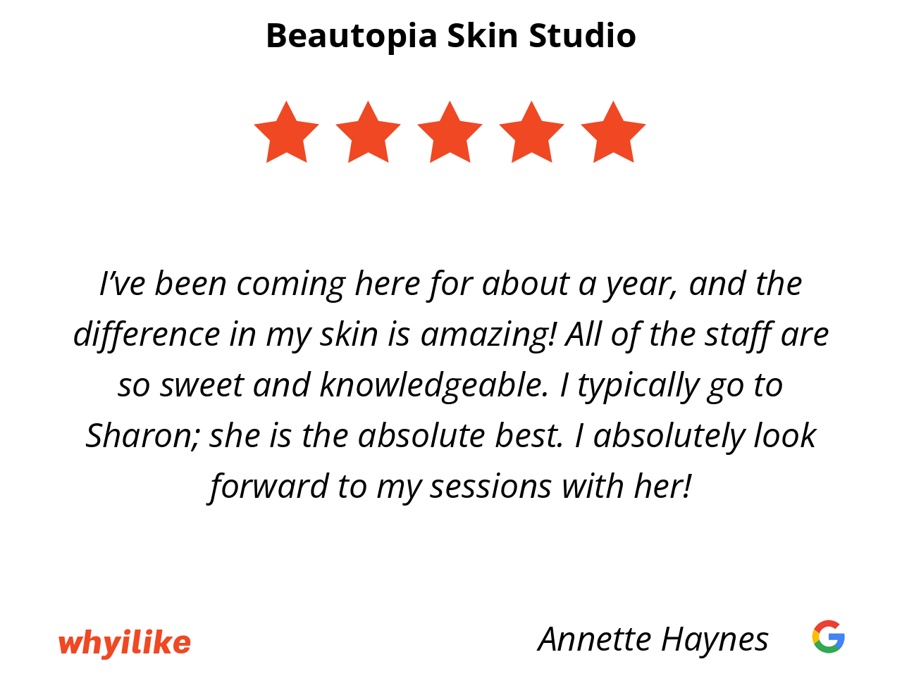 I love Beautopia! They are friendly and welcoming as soon as you enter. My consultation with Morgan was so helpful to set a plan to focus on what I wanted to work on and left me knowing I was in good hands. I had my dysport treatment with her and was so happy with the results. I have also seen Krystin for 2 facial treatments and loved her!! Highly reccommend !!