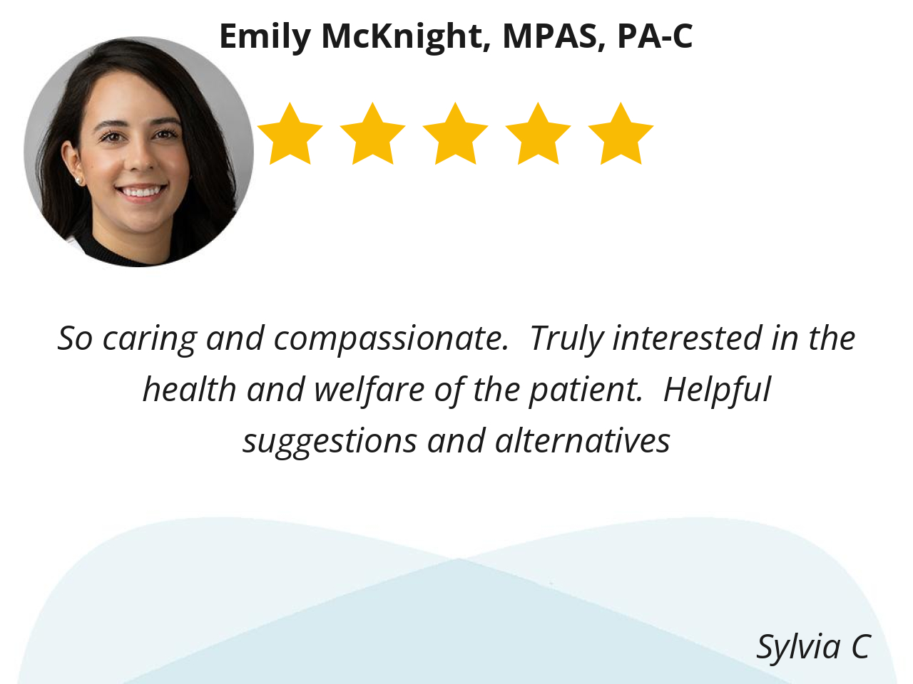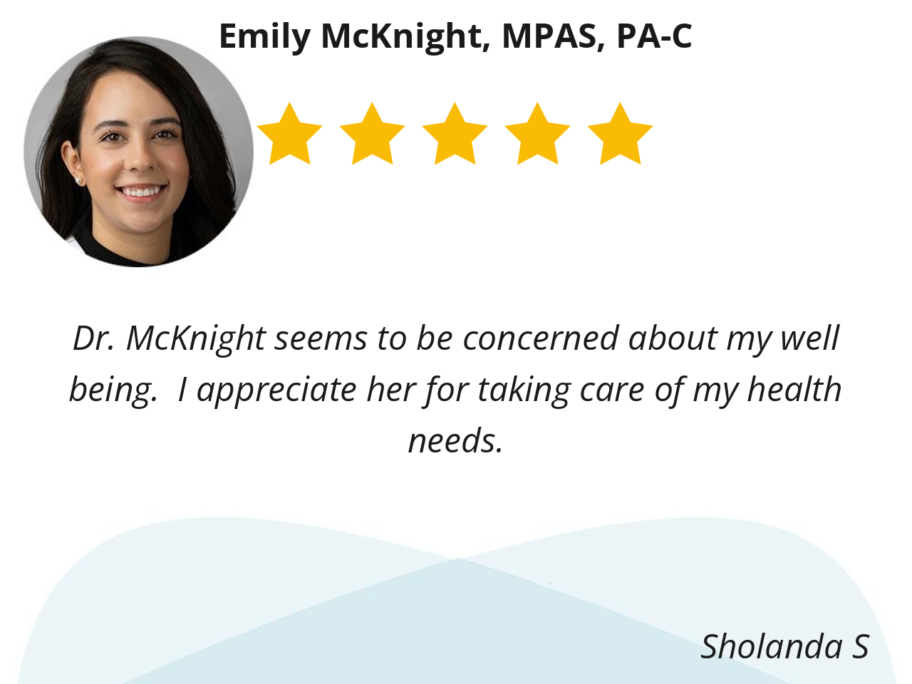 Dr. McKnight seems to be concerned about my well being. I appreciate her for taking care of my health needs.