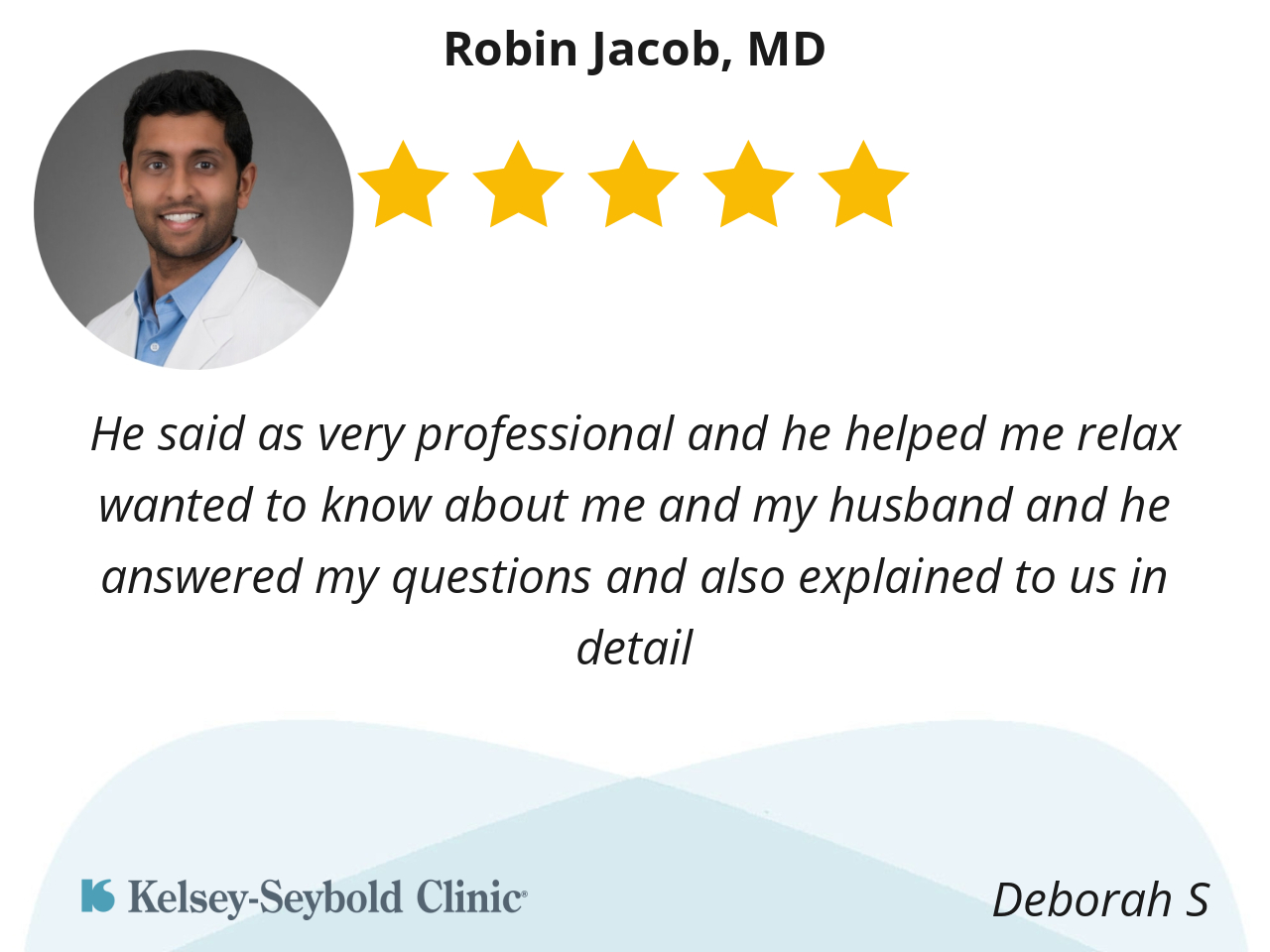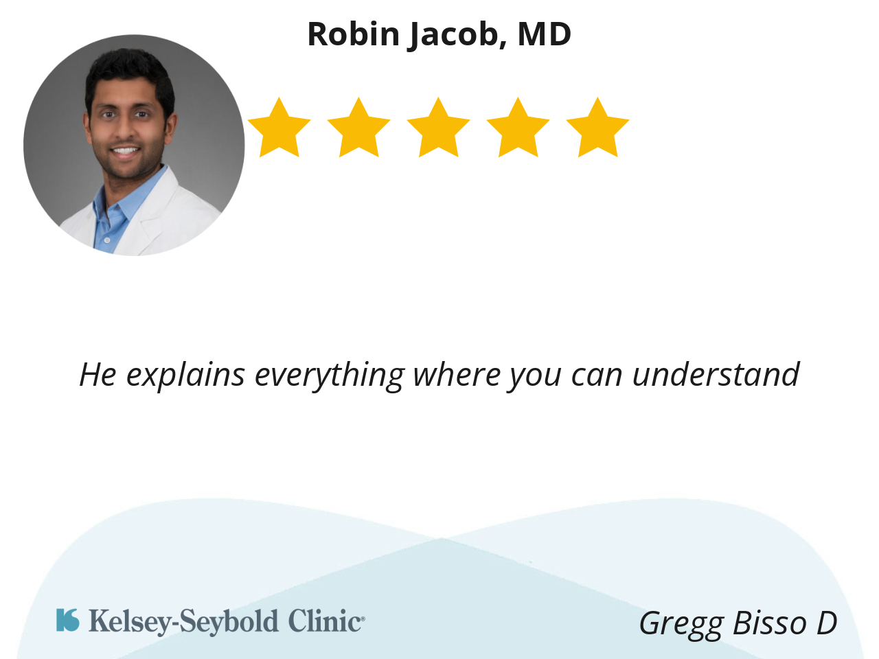 He treated me like a person, not a patient. He sat down and just talked to me. The best doctor with the exception of my PA I’ve ever had. All Kelsey doctors are great, but Dr . Jacob’s is incredible
