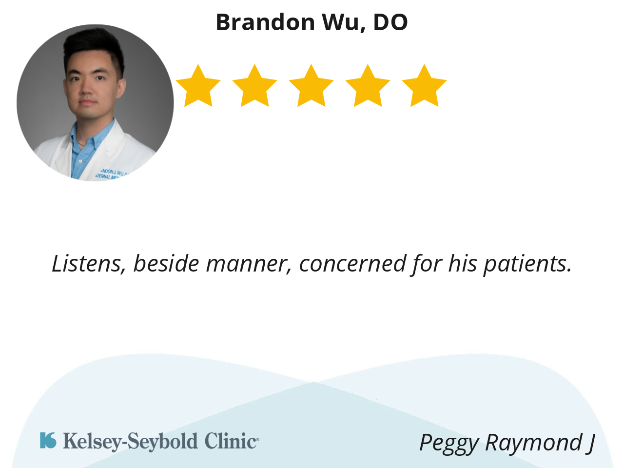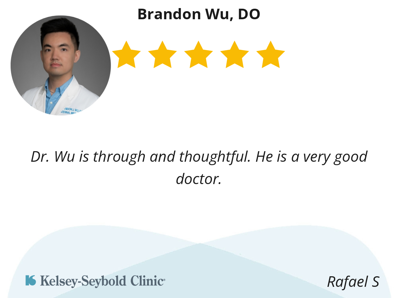 I like Dr Wu because he listens to me and is concerned about my health. He review my medicine and see if it's need changing.