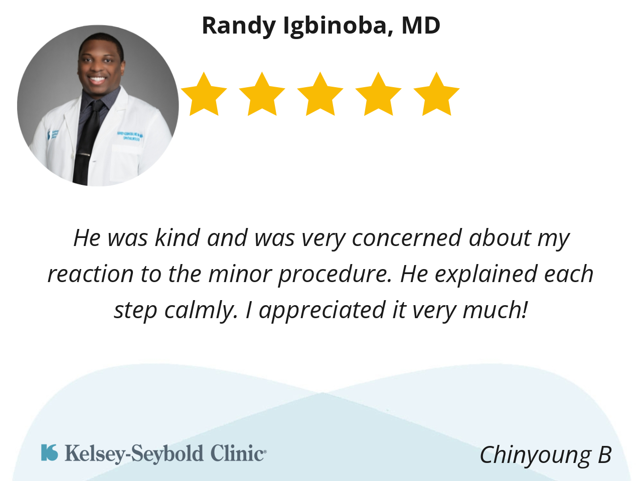 Dr. Igbanoba was very caring he explained himself..that eased my mind. I had surgery on both eyes..he made me feel comfortable n at ease before n after the surgeries.