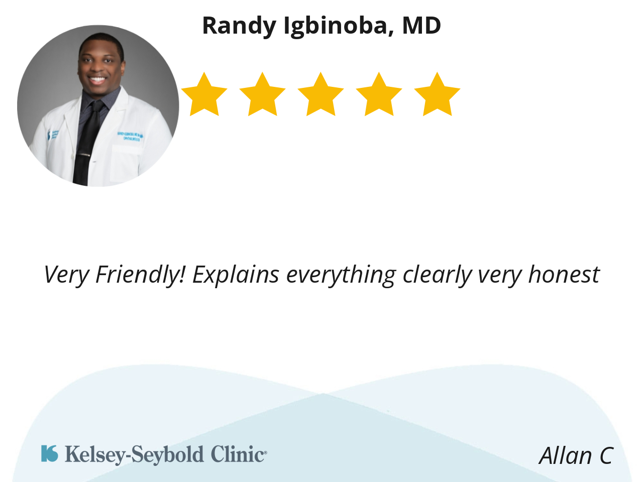 I like Dr.Igbinoba he seems to be a straight shooter and discussed all the possibilities of what to expect during surgery and after.
