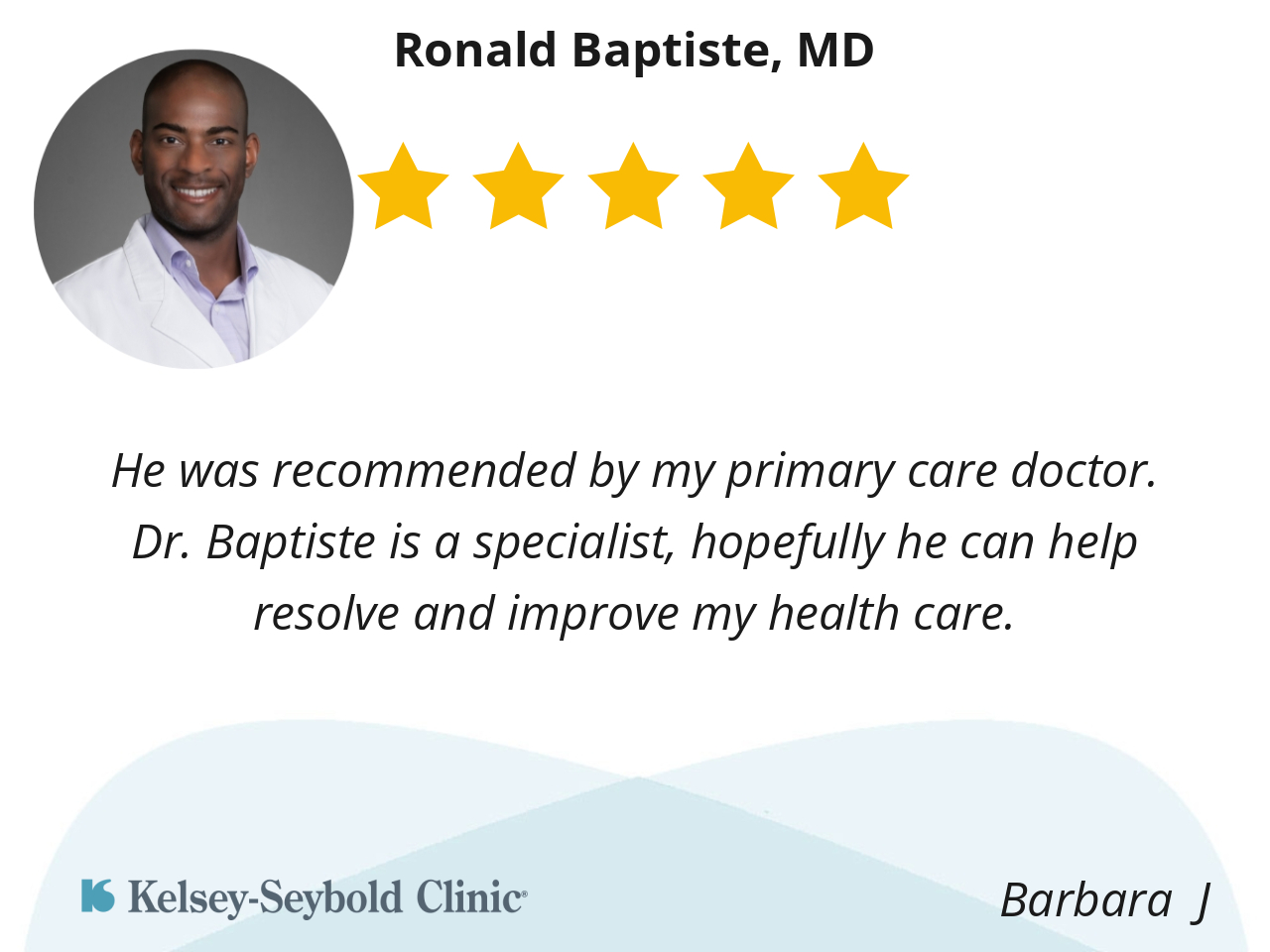 He was recommended by my primary care doctor. Dr. Baptiste is a specialist, hopefully he can help resolve and improve my health care.