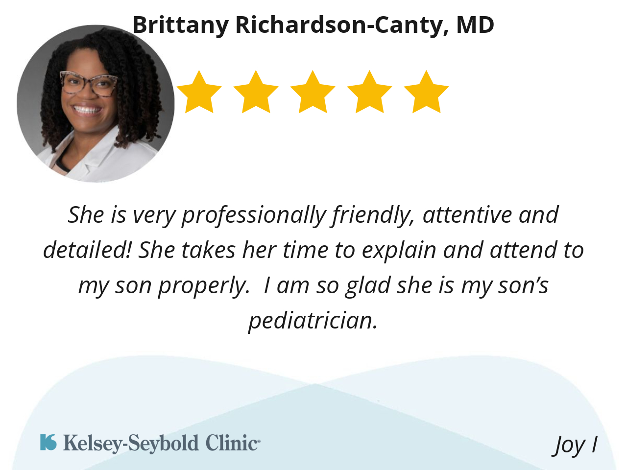Dr. Richardson-Canty is a great doctor. She made me and my granddaughter welcome. She answer all our questions. She was amazing talking to my granddaughter.